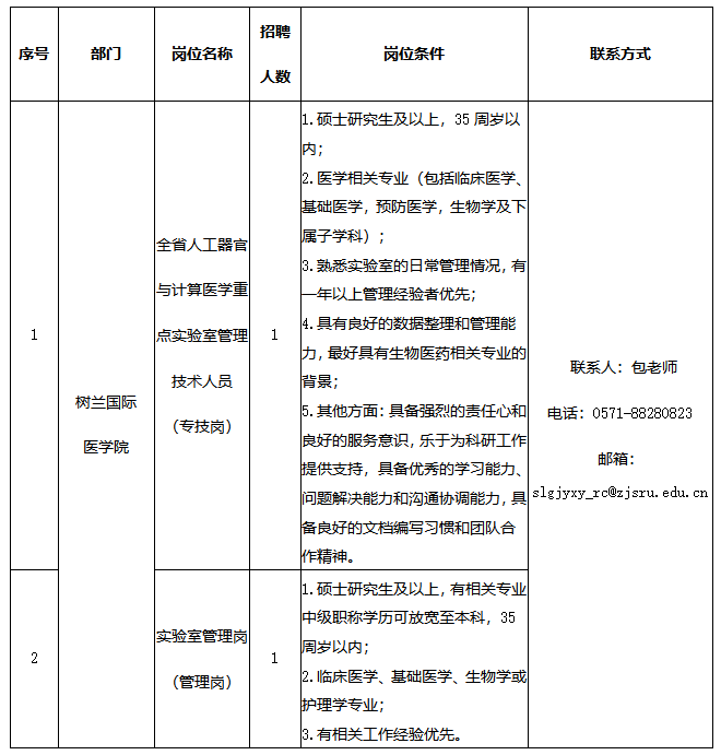 一、 招聘岗位信息