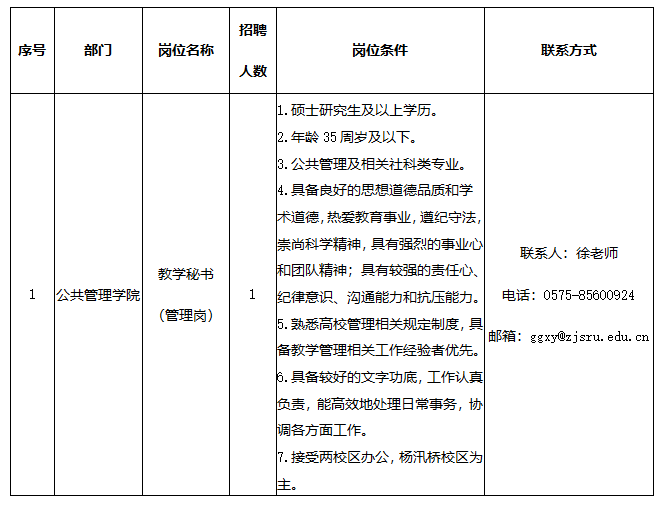 现因工作需要,学校面向社会公开招聘年薪制工作人员1名。现将有关事项公告如下: