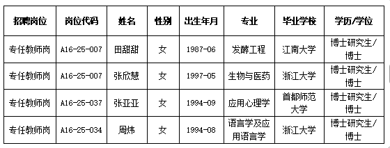 根据2025年9月18日《浙江省省属高校、医院和科研院所2025年特殊专业技术岗位目录》,经报名、资格审查、面试、体检,现确定下列人员为我单位拟聘用人员并公示如下: