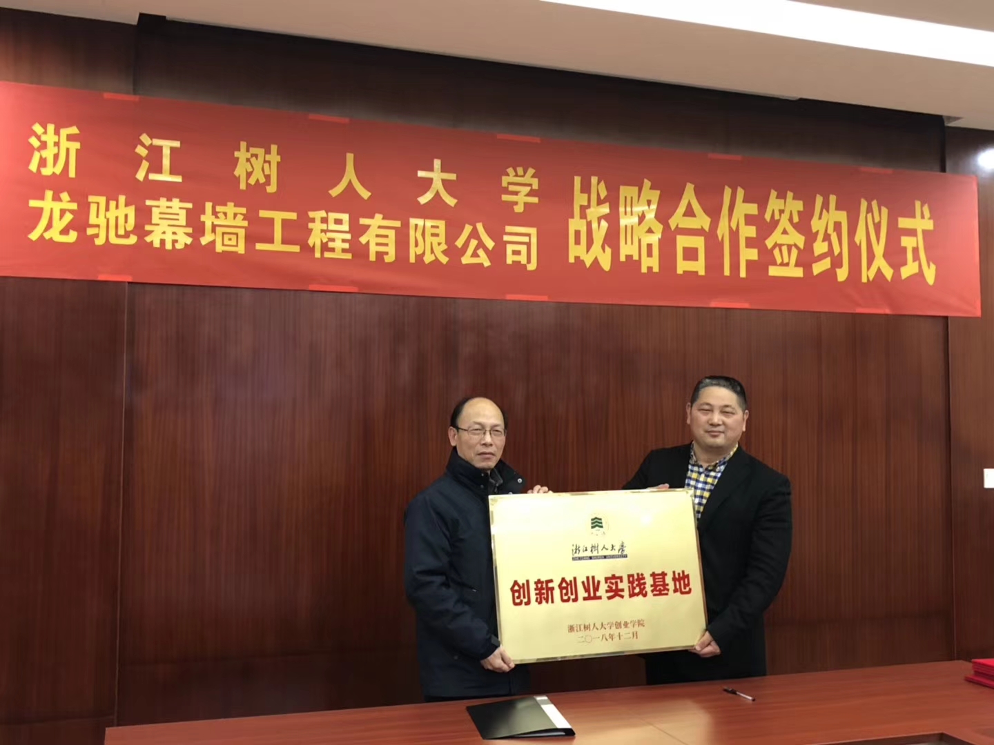 12月21日,浙江树人大学(浙江树人学院)党委副书记、创业学院院长王军带领创业学院师生、创业校友一行13人,赴龙驰幕墙工程有限公司签约校企合作创新创业实践基地。参加本次签约仪式的企业方领导嘉宾有龙驰幕墙工程有限公司总经理胡瑞宾、锦阳集团党总支书记周星驰、杭州龙驰科创园管理有限公司负责人孔春阳等。