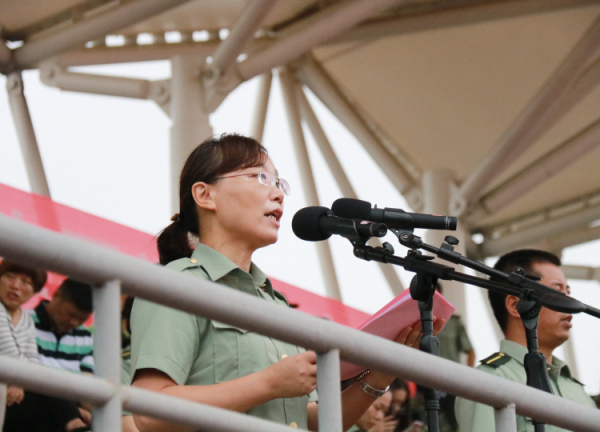 9月22日上午,我校2017级学生军训成果汇报表演暨总结表彰大会在杨汛桥校区田径场举行。校领导徐绪卿、章清、童国尧、王军、陈新民、叶时平、陆桂芹、陈浚、冯淑娟和军训团团长、武警士官学校刘长征中校等嘉宾出席,各学院、各职能部门负责人、校学生军训领导小组全体成员以及军训团全体参训师生、教官参加了大会。校纪委书记、军训团副政委陆桂芹主持总结会。