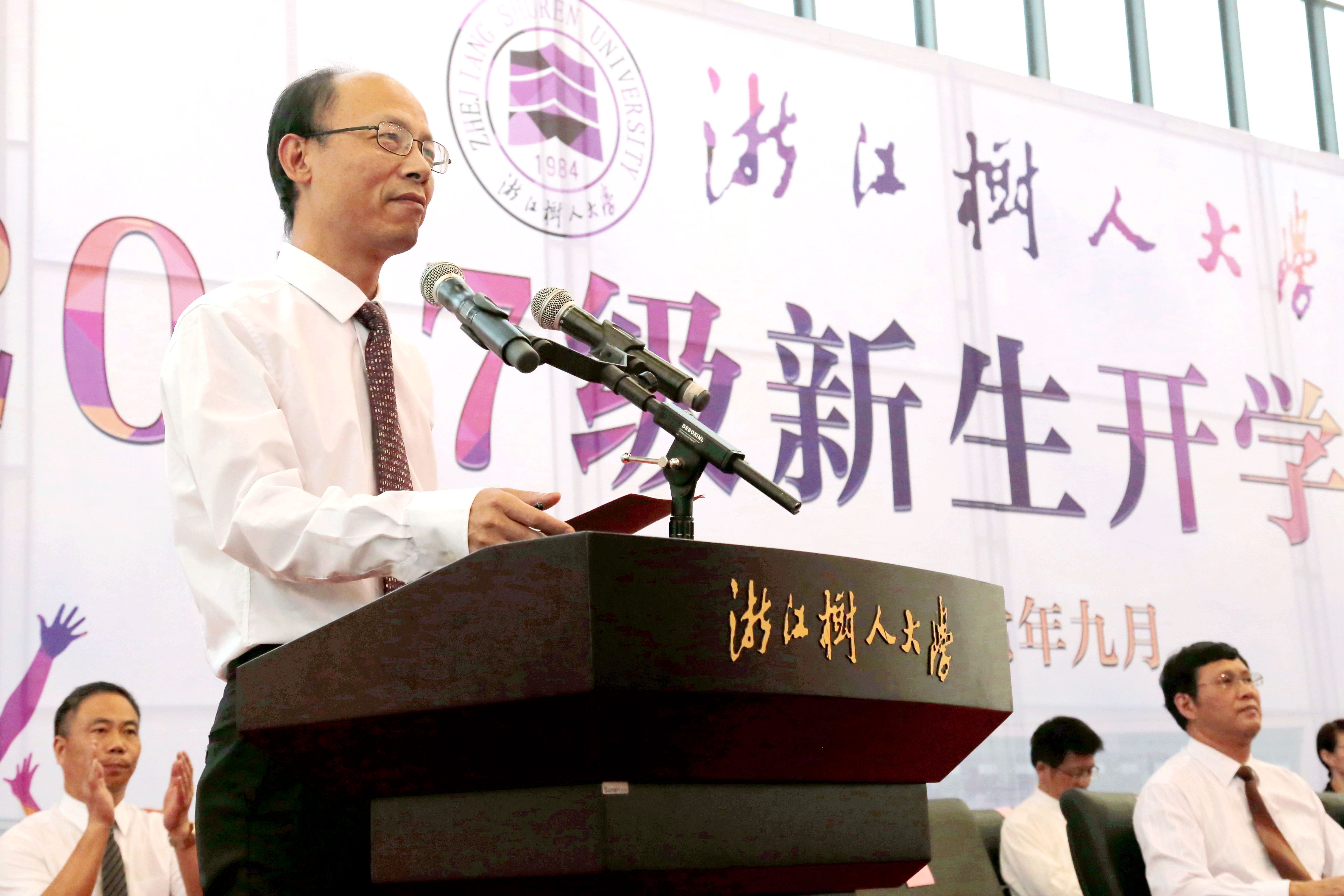 最后,校长徐绪卿作了题为《自律、专业以及担当精神》的讲话,对新生提出期盼,希望他们做一个自律的人,一个博学的人,一个担当的人,用梦想引领自己,用学养来提升自己,在合作中历练自己。