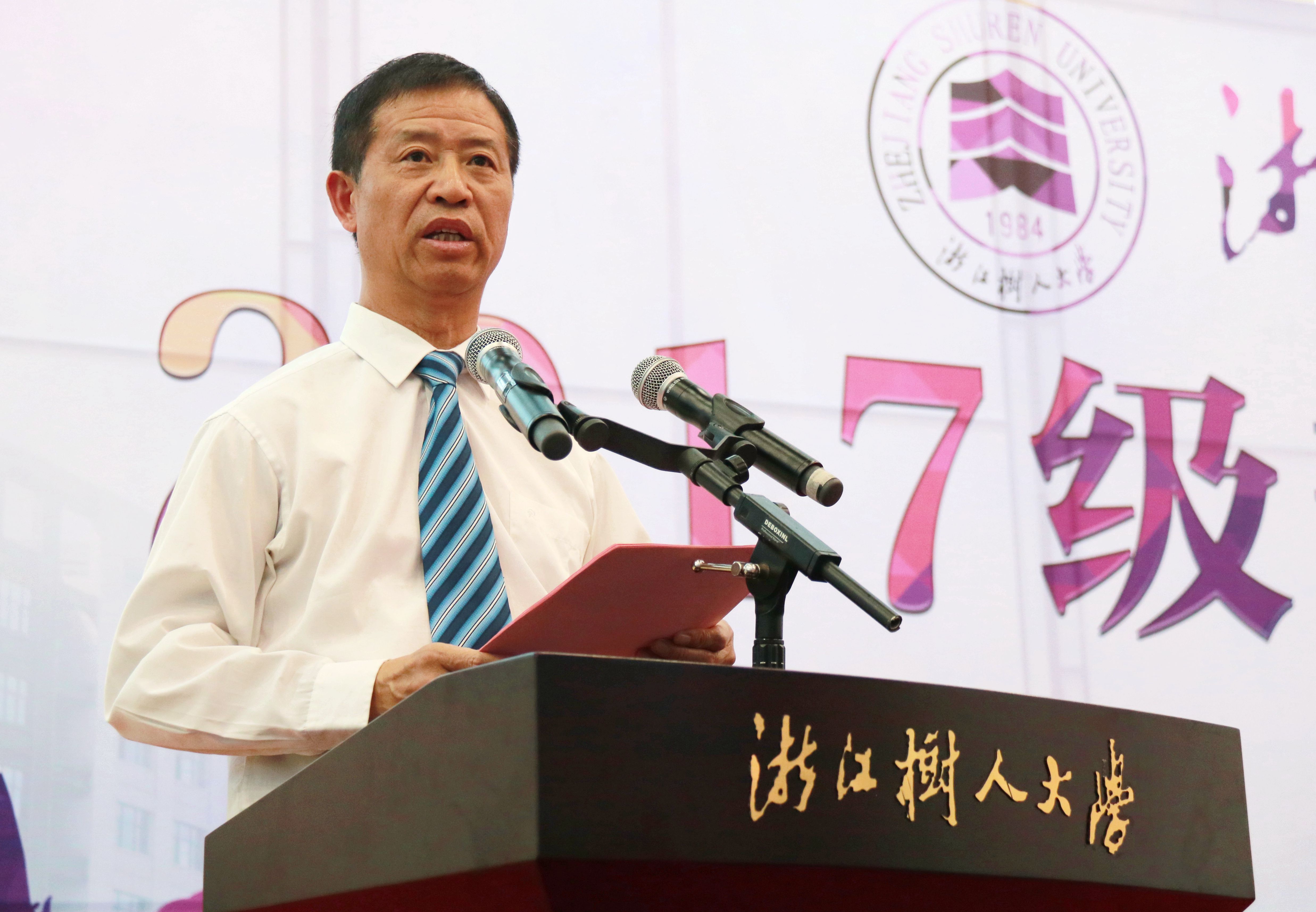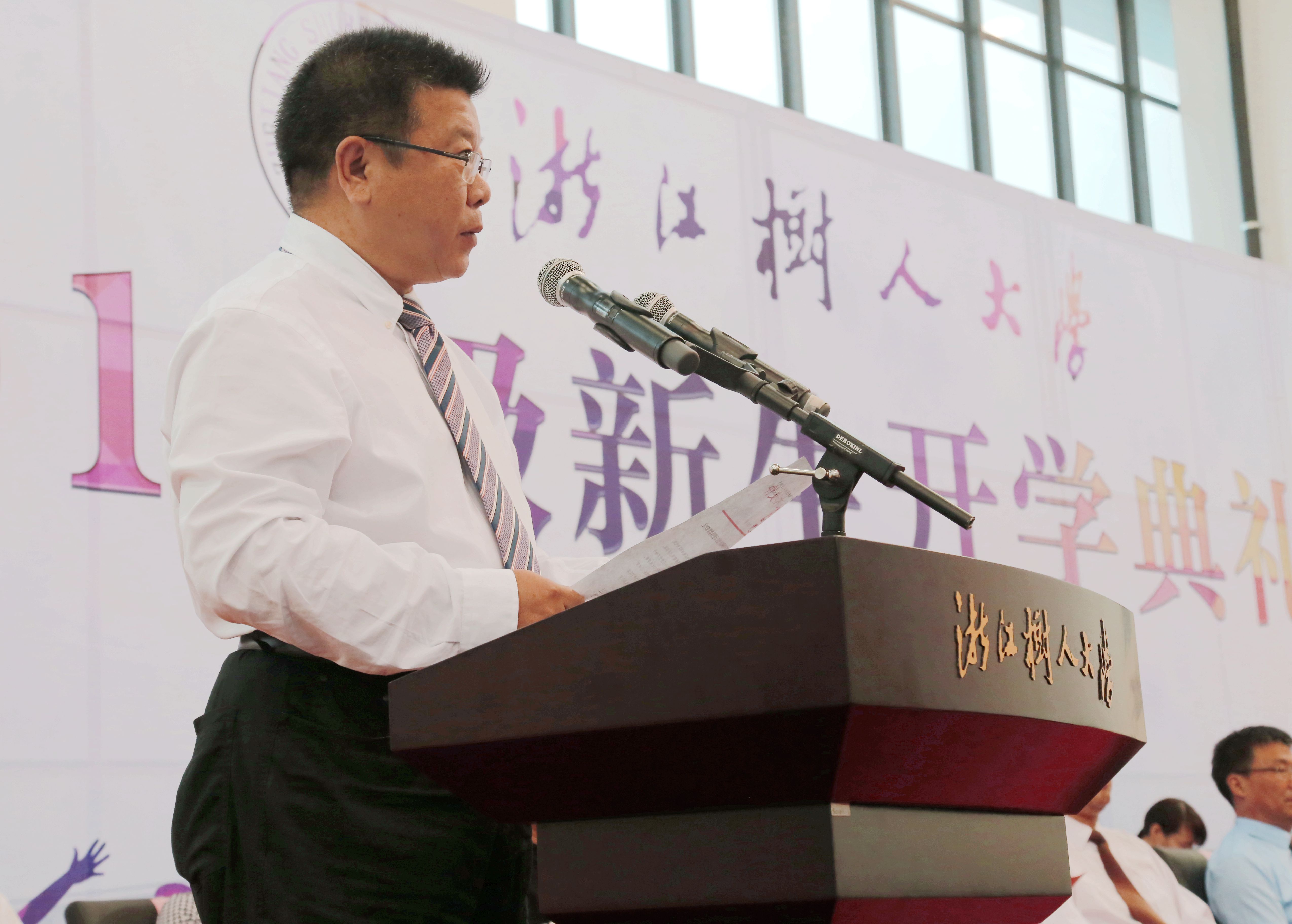 秋风习习,秋雨淅淅,驱走了暑气,却浇不凉浙江树人大学(浙江树人学院)2017级新生们的满腔热情。9月22日下午,浙江树人大学2017级新生开学典礼在绍兴杨汛桥校区体育馆举行。学校全体领导班子成员,相关学院、部门负责人,部分师生代表及2017级全体新生参加了开学典礼。开学典礼由校党委副书记王军主持。