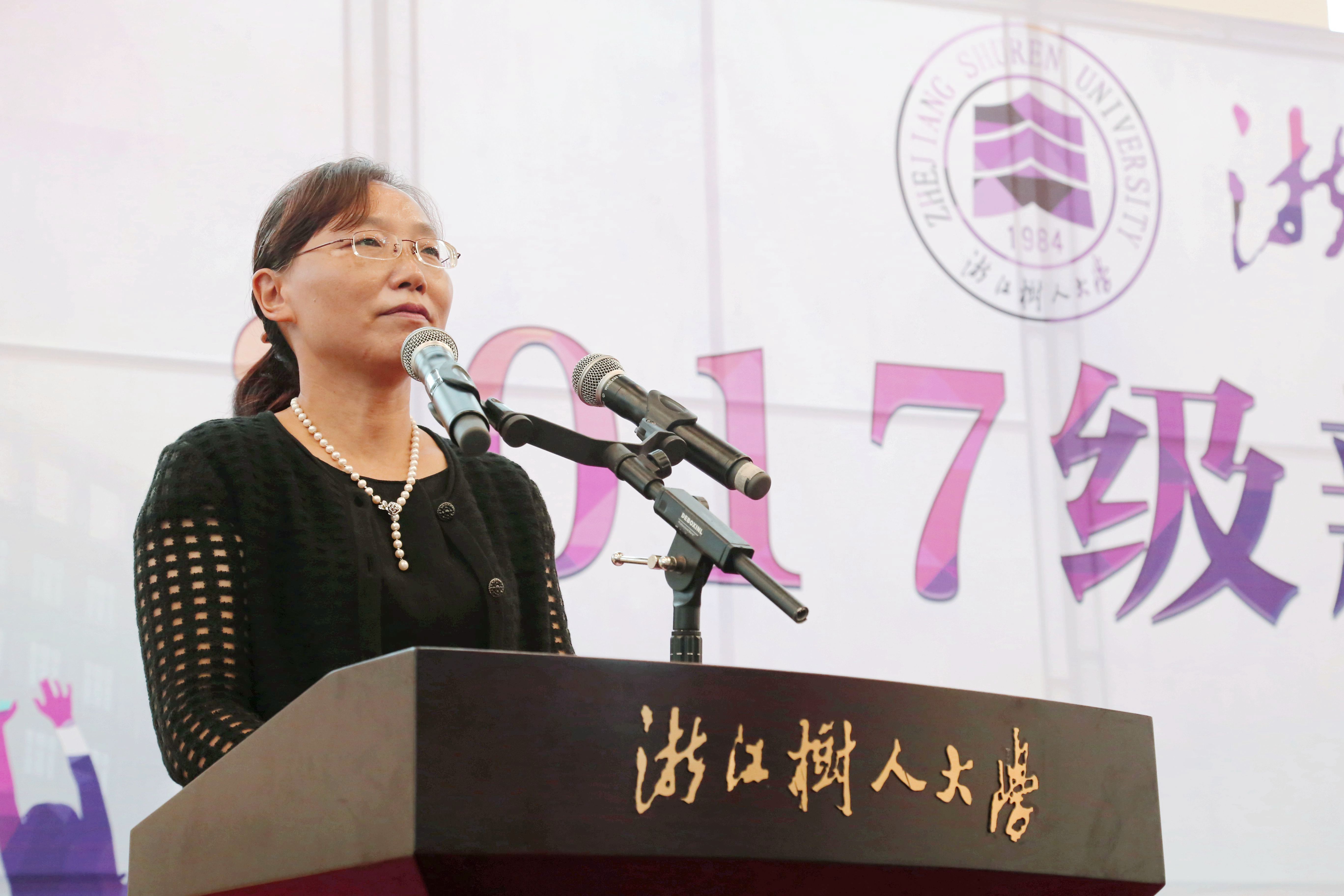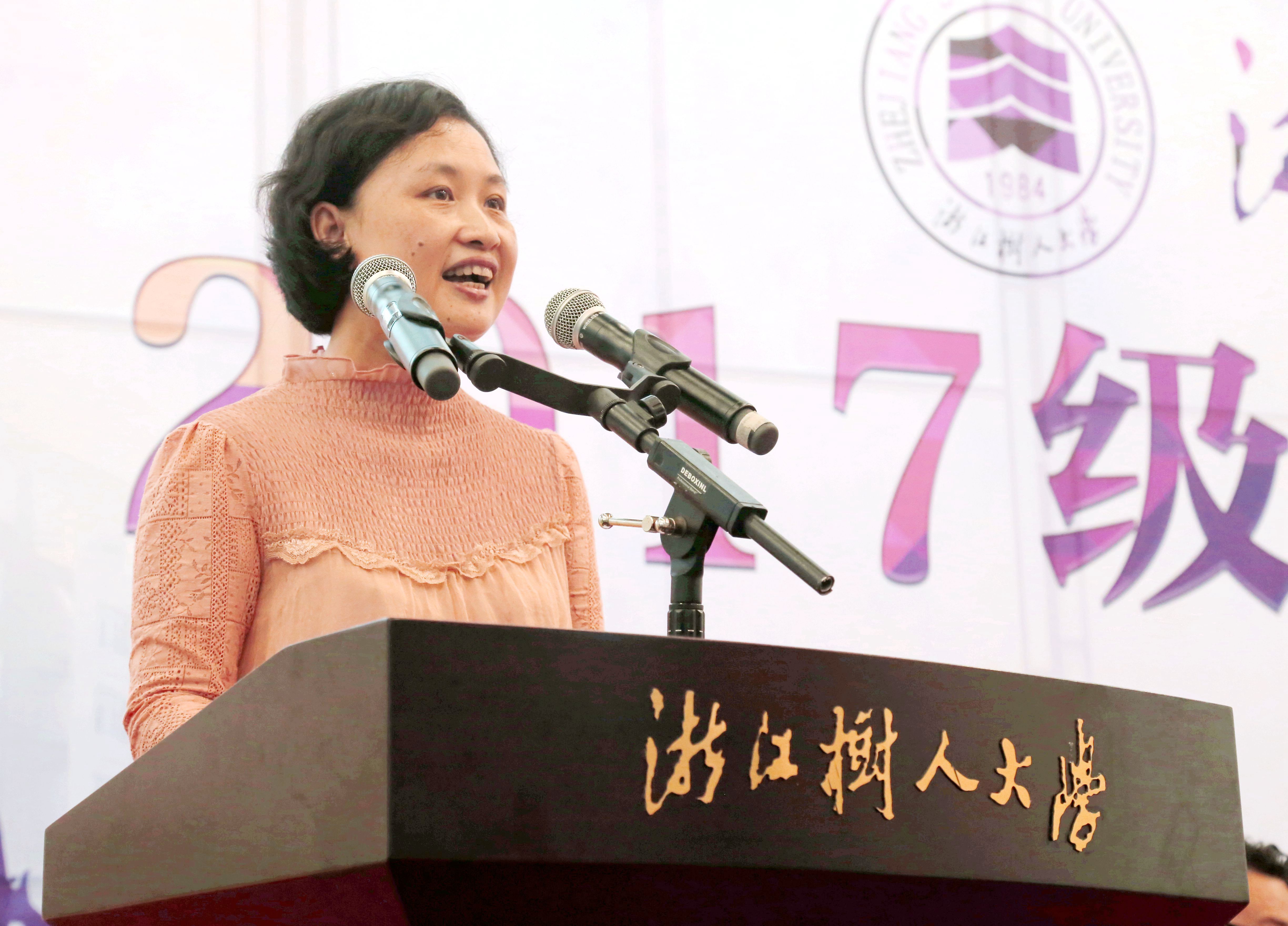 教师代表浙江省第五届师德标兵先进个人蔡晓鸥教授也嘱咐同学们要在大学四年,规划好人生大方向,开拓视野,培养情怀,以广博+专业,让自己的走得更稳、走得更远。