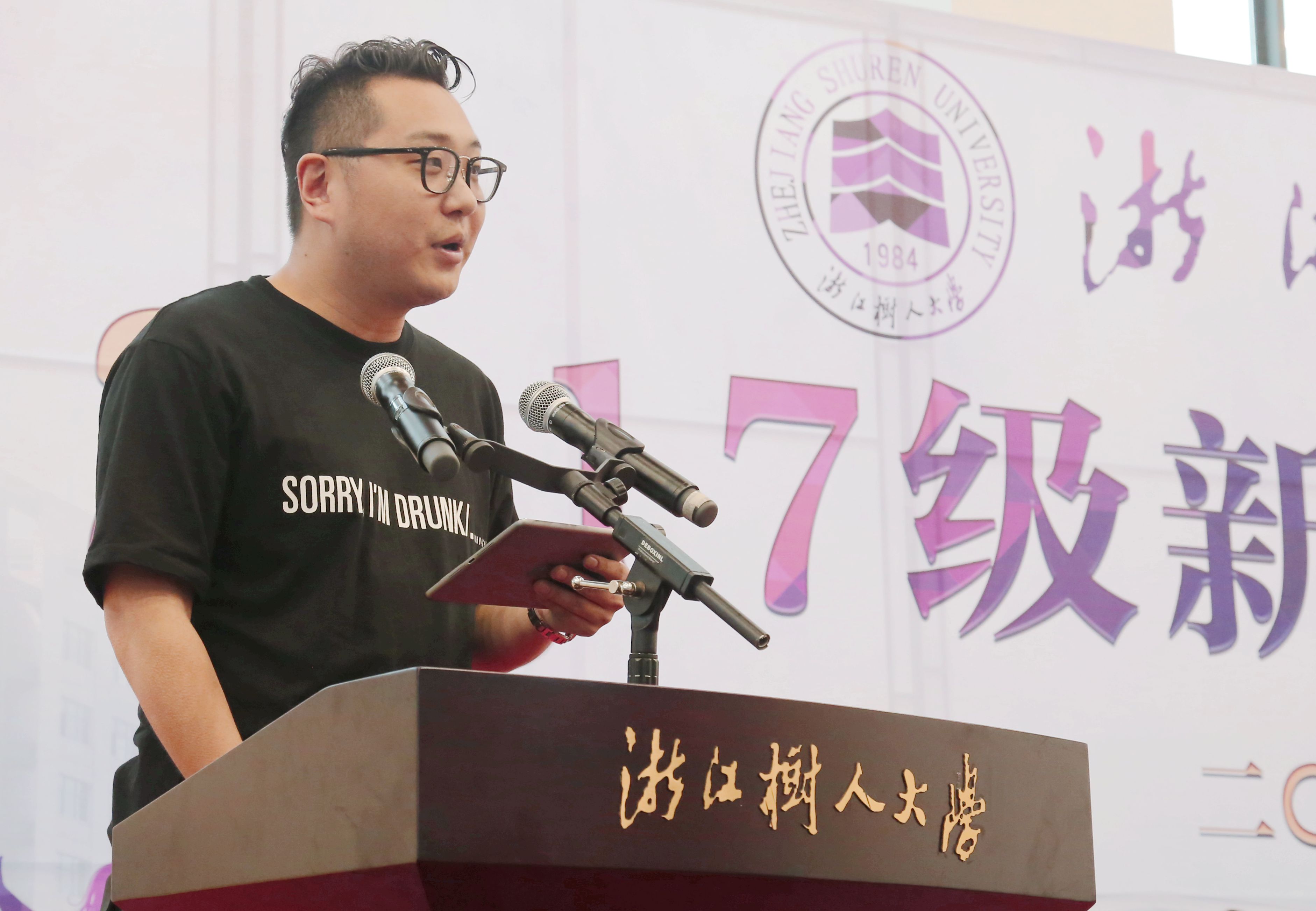 校友代表中国服装设计师协会艺术委员会委员谷雨先生回望了在树大的学习生活,建议各位学弟学妹们让大学生活丰富一点,忙碌一点,充实一点,并且还要创造一份属于自己的感动。