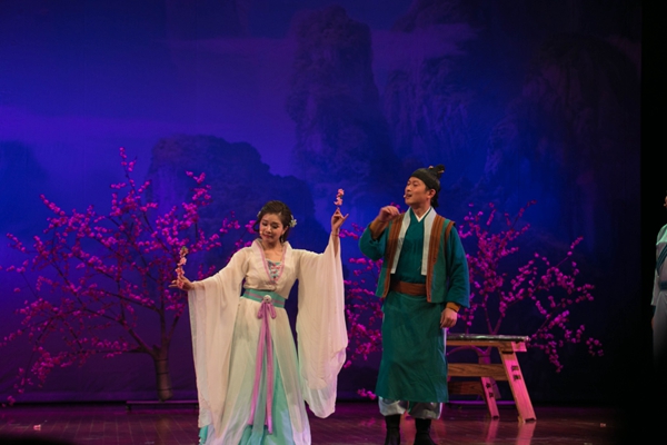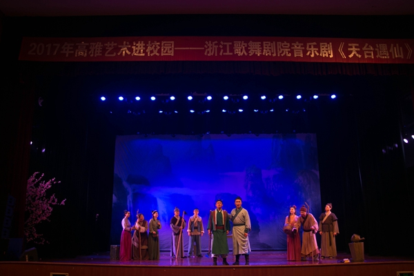 5月22日晚,树人礼堂琴瑟悠悠,萧声苍然,由浙江歌舞剧院带来的音乐剧《天台遇仙》在此上演。仙山桃畔,眸光流转,少年寻药,竟巧遇仙女……当千年传说与音乐剧相遇,会碰撞出怎样的火花呢?