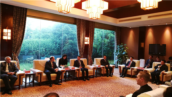 访问期间,安德列·科索维斯基一行还受到浙江省科技厅副厅长王坚、浙江省外国专家局局长厉勇、绍兴市副市长徐国龙等的会见,分别就中白科技项目合作、外国高端人才引智等与安德列·科索维斯基一行进行了深入交流。安德列·科索维斯基表示,白俄罗斯拥有较强的工业基地、优秀的科技研究人员,而浙江省经济发达,历史文化底蕴深厚,同时政府部门高度重视,双方一定会有广泛的合作领域。为了真正落实“产学研”合作,实现共建共赢共享,在我校的牵线和推进下,白俄罗斯科技委员会与柯桥区金柯桥科技城签订了合作备忘录,并参加了由柯桥区人力社保局主办的“对接人才科技项目需求交流会”,浙江梅盛实业股份有限公司、绍兴鑫杰环保科技有限公司、红绿蓝纺织、亚太药业、滨江水处理等10余家企业参加了交流会。