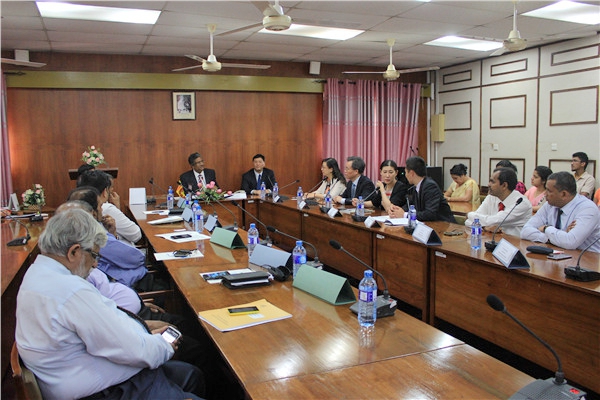 座谈会结束后,访问团一行在该校商业管理学院院长等的陪同下参观了校园和教学设施,并与该院MBA毕业生进行了座谈和交流,考察了斯里兰卡高校以及高等教育现状。斯里贾亚瓦德纳普拉大学(University of Sri Jayawardenapura)位于Gangodawila,Nugegoda,斯里兰卡环境优美的城市,离首都科伦坡十五公里。该校建于1958年,由佛学研究中心发展而来,是中国教育部认证的该国6所大学之一。学校提供本科到博士的教学项目,拥有有七大学院:理学院、人文社会学院、商业管理学院、医学院、技术学院、工程学院及研究生学院。该校国际化程度较高,经过近十年的改革,主要课程授课语言均为英语。