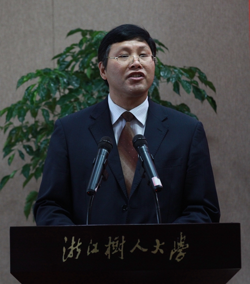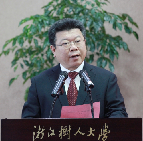 4月19日上午,在浙江树人大学(浙江树人学院)绍兴杨汛桥校区举行绍兴黄酒学院揭牌仪式。浙江省政协原副主席、党组副书记、浙江树人大学董事长陈加元,中国作家协会原副主席陈崎嵘,省政协副秘书长、办公厅主任、浙江树人大学副董事长王喜法,省经信委轻纺办副主任刘伟龙,省酒业协会秘书长章谷成,柯桥区人民政府副区长祝静芝等各界领导,精功集团董事局主席金良顺,会稽山绍兴酒股份有限公司董事长金建顺等各界人士及校长徐绪卿、校党委书记章清等校领导出席揭牌仪式,我校相关部门(学院)、会稽山绍兴酒股份有限公司相关人员及各大媒体齐聚新校区学术报告厅。