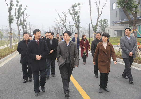 在听取徐绪卿的工作汇报后,郑继伟肯定了全校上下在新校区建设中所作出的贡献,认为新校区的正式运行是学校发展中跨越的重要一步,是浙江树人大学一代又一代人努力奋进的成果。从调研考察情况看,新校区已经实现平稳运行,学生能够顺利求学,“一校两地”发展有序推进,是学校领导正确指导、全校师生通力合作的结果,学校目前取得的成就实属不易。针对汇报中所提及的困难和问题,他认为,学校发展的前景是广阔的,困难的出现是阶段性的,要借鉴省内其他高校发展的成功经验,用发展的眼光、长远的规划来建设学校,走出一条适合树人大学发展的新道路。