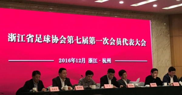 12月21日,浙江省足球协会在杭举行第七届第一次会员代表大会。郑继伟省副省长出席会议并作重要讲话,省政府副秘书长李云林、夏海伟,省体育局局长孙光明、副局长吕林及省发改委、教育厅、公安厅、能源集团、浙商银行等部门单位代表出席会议。会议选举夏海伟为新一届省足协主席,同时选举产生了第七届浙江省足球协会领导班子以及协会成员。