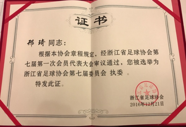 基础部邢琦老师作为现役中超联赛裁判员,此次以足球界专业人士的身份参加会议并入选浙江省足球协会执委名单。邢琦老师系我校公体部足球老师,校足球队教练员,也是浙江省唯一现役中超裁判员。在认真完成学校本职工作之外,邢琦老师一直积极参与各级各类社会足球服务工作,先后担任浙江省足球协会委员、执委,浙江省大学生足球协会委员、裁委会副主任等职务,为省足球运动发展贡献力量。