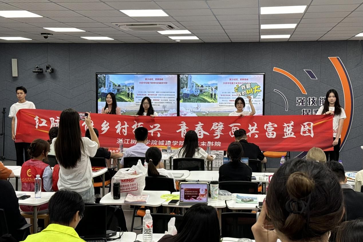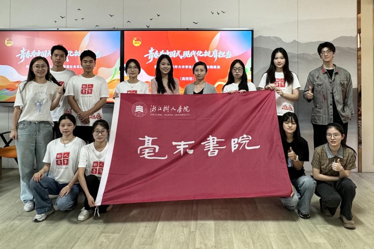 据悉,此次展演活动共有34支大中学生暑期实践团队参加,我校两支队伍给在场评委留下深刻印象,不仅展示了我校在实践育人方面的显著成果,更彰显了树人学子们将专业知识与社会需求紧密结合的创新能力。其中,“青春筑想家乡村振兴社会实践团”深入乡村一线,通过规划与设计助力乡村面貌焕新,其创新性的实践方案与扎实的调研成果赢得了评委的高度认可;“越剧发源调研团”则聚焦地方文化传承,通过实地走访与资料整理,为越剧文化的保护与传播提供了详实的数据支撑与可行性建议,展现了青年学子对传统文化的责任感与使命感。