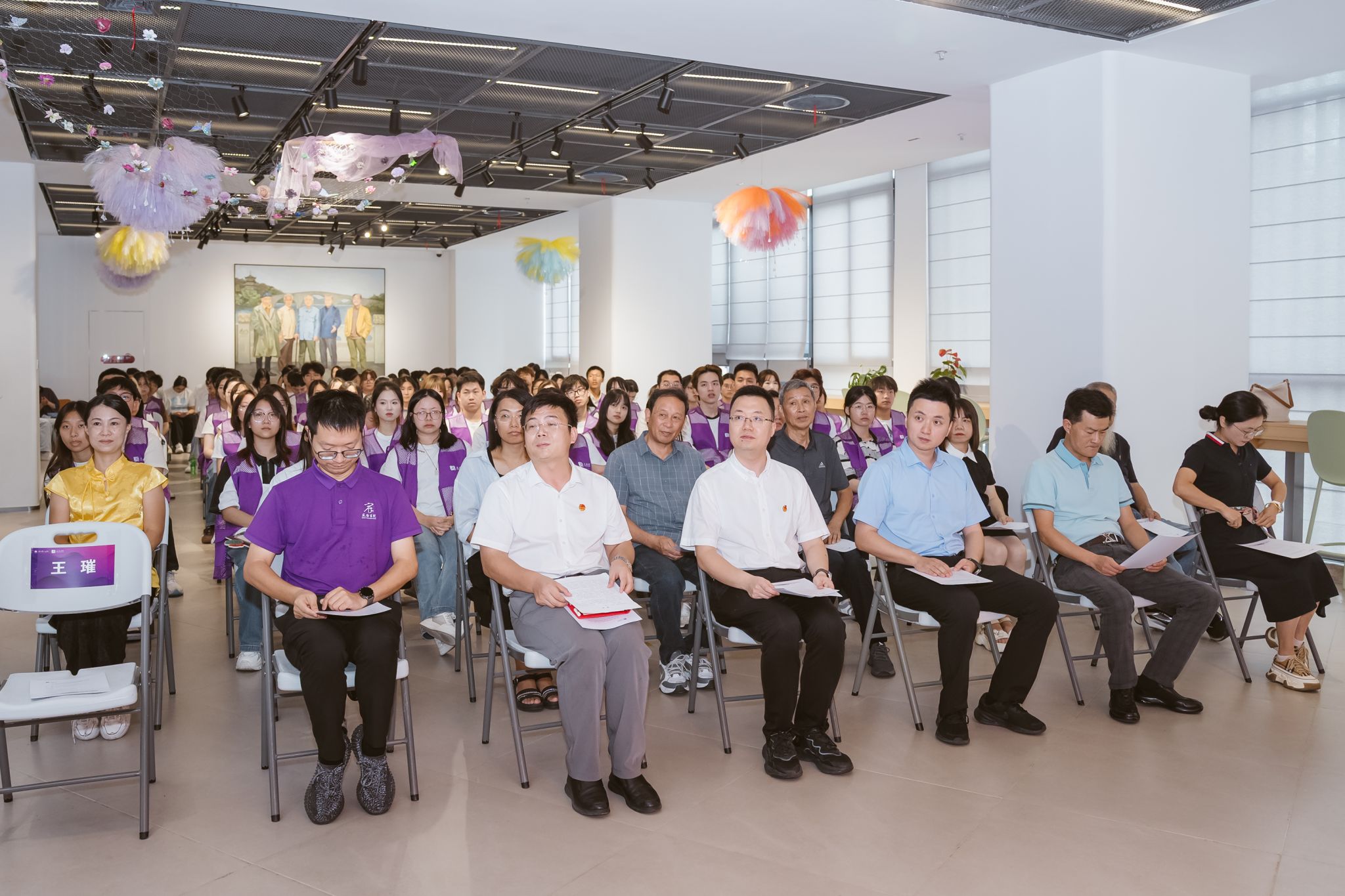 紧接着举行的通识教育导师聘任仪式,将现场氛围推向高潮。李德顺(绍兴扇艺)、吴志娟(剪纸)、吴金荣(绍兴花雕)、茹园儿(圆木制作技艺)、魏亚君(非遗手作大糕)、吴婵燕(省级优秀手工社团教师)、胡玲娟(绍兴市柯桥中星越剧团团长)等七位在非遗领域具有深厚造诣的专家和老师受聘为宸阳书院通识教育导师。王伟君为他们颁发聘书,期待他们以专业智慧助力非遗传承教育实践,为学生成长注入文化力量。
