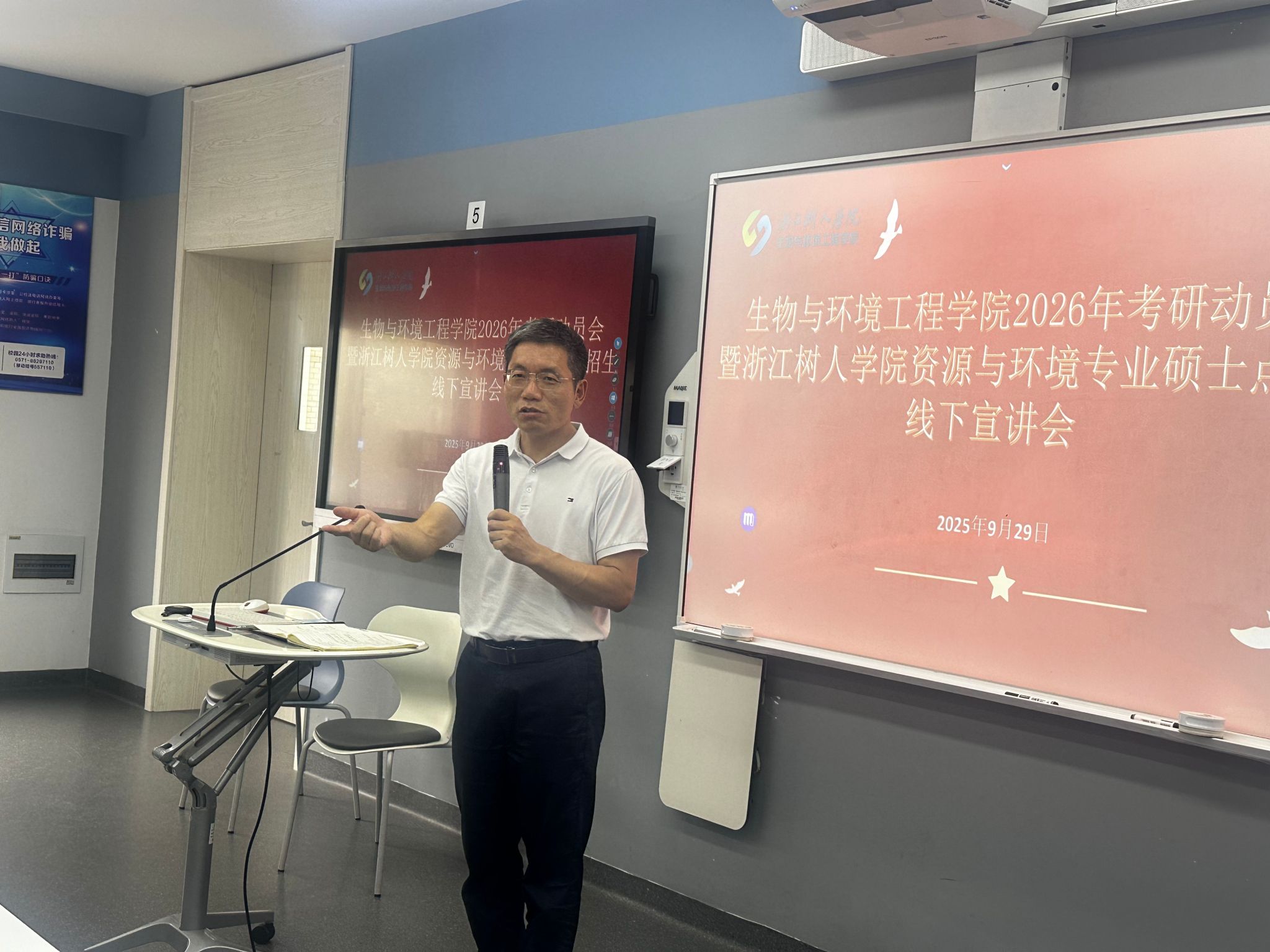 为了更好推进学院研究生招生工作,帮助本院考生全面了解资源与环境硕士点2026年的招生政策、专业特色和科研力量,在生物与环境工程学院(交叉科学研究院)和崇德书院共同组织下,9月29日下午,生物与环境工程学院(交叉科学研究院)召开了2026年研究生招生动员会暨资源与环境硕士点招生宣讲会。会议由副院长韩超主持,副校长陈浚、执行院长潘华参加了会议并作动员和宣讲。