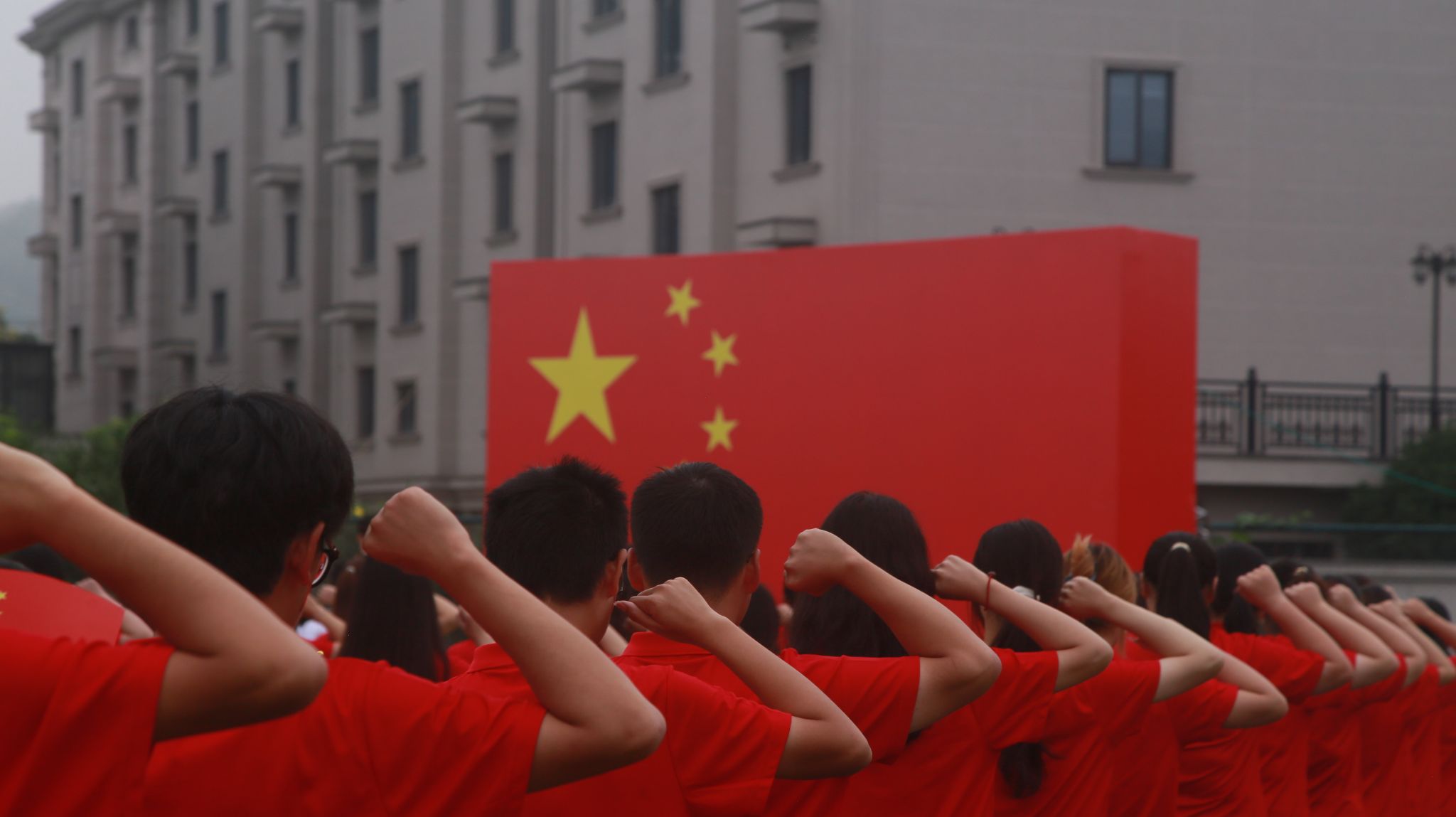 升旗现场,热情洋溢。师生代表聚集到旗杆周边,自发地随着音乐合唱《歌唱祖国》《今天是你的生日》等歌曲。
