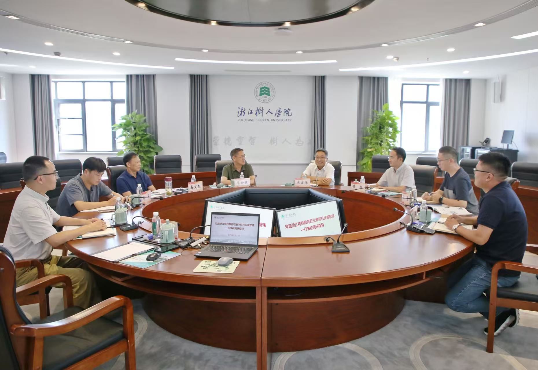 10月11日,浙江特殊教育职业学院校长黄宏伟一行4人来我校拱宸桥校区调研交流。我校副校长陈新民出席座谈交流会,教务处、生环学院、学工部、党办(校办)等相关负责同志参加座谈。
