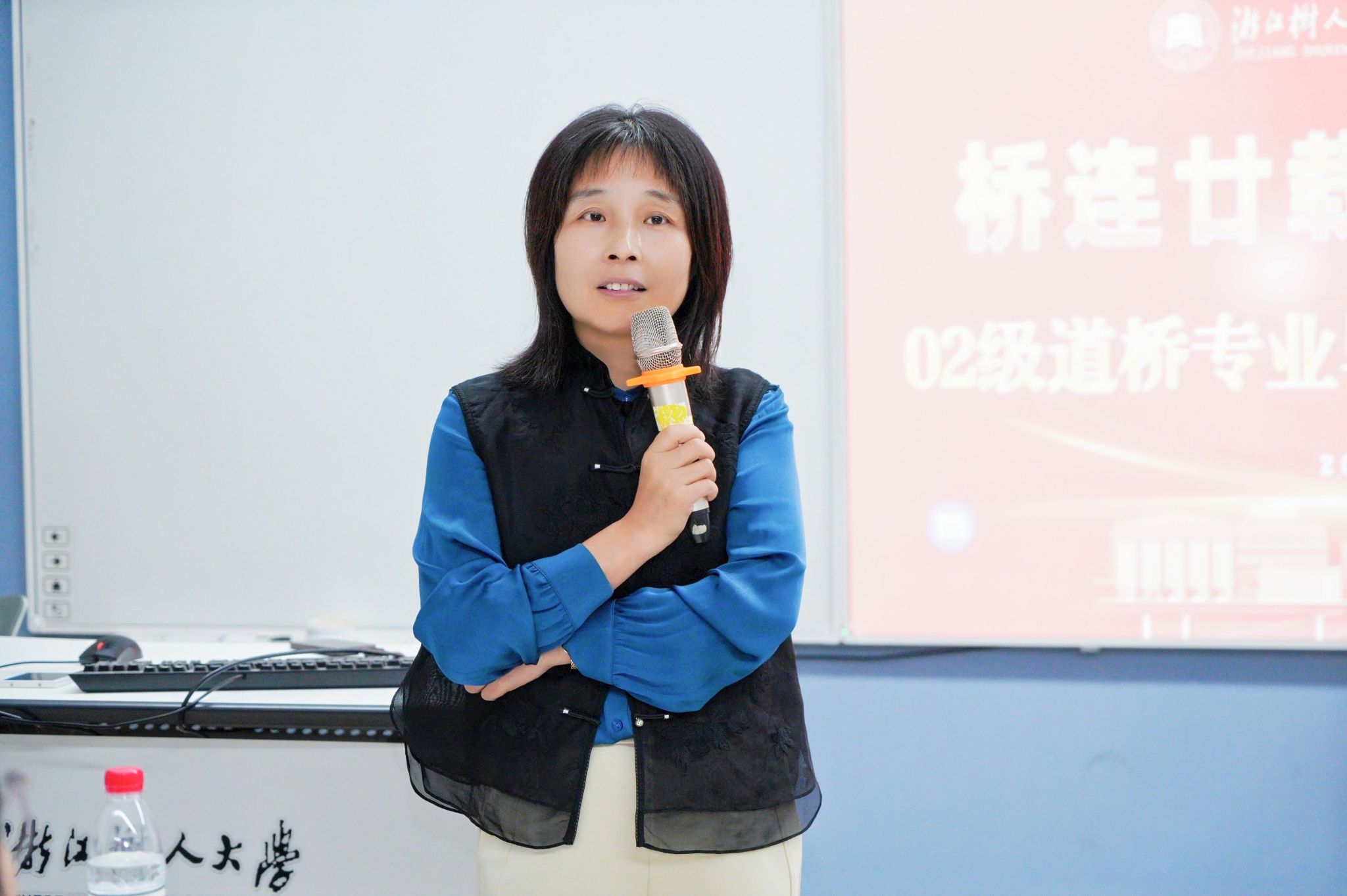2025年10月18日,2002级道路与桥梁工程专业校友从全国各地重返母校,在拱宸桥校区隆重举行毕业二十周年同学会。30余位校友与昔日恩师同窗欢聚一堂,重温校园记忆。出席本次活动的有学校教育部高校思创中心执行主任、原学院副书记宋斌,城建学院院长、2002级道桥专业班主任金小群,城建学院党委书记苏根良,以及曾任教该班的专业课教师与辅导员徐根洪、徐毅青、王艳、吴章土等。