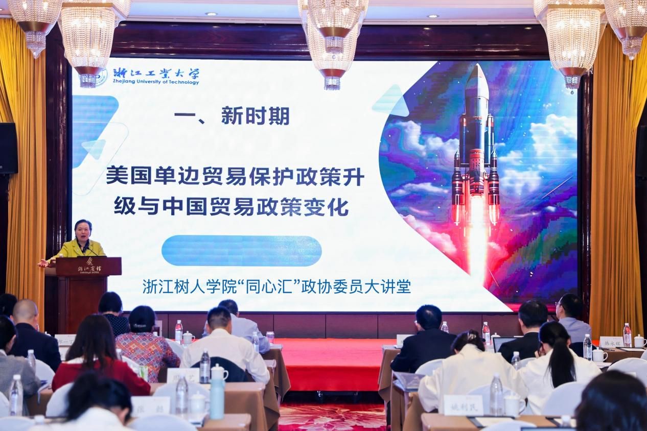 10月19日,由经济与管理学院主办的浙江树人学院“同心汇”政协委员大讲堂在浙江宾馆贵宾楼莲花厅顺利举行。本次讲座特邀第八、九届浙江省政协委员程惠芳教授,作题为《新时期中国产业与贸易政策协同发展机制与实施路径》的学术报告。