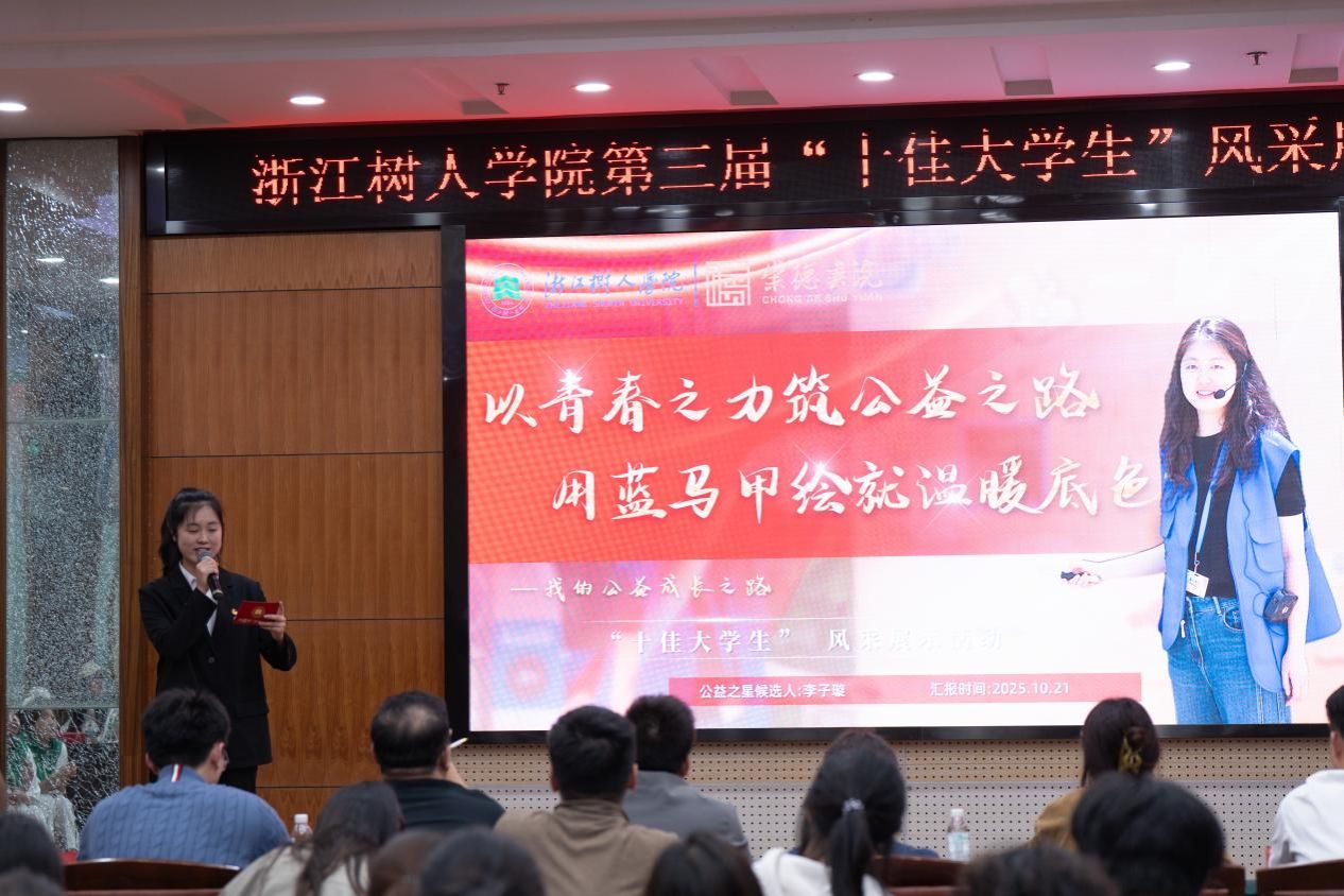 经过各个环节激烈角逐,最终经济与管理学院/明哲书院王玮琦同学、城建学院/毫末书院陈浩正同学、树兰国际医学院/崇德书院翁瑞岐同学、树兰国际医学院/崇德书院郑娇娇同学、经济与管理学院/明哲书院蒋灿灿同学、信息科技学院/崇德书院叶思彤同学、树兰国际医学院/崇德书院李子璇同学、信息科技学院/重智书院章程皓同学、经济与管理学院/明哲书院仇凯奕同学、信息科技学院/重智书院钱江燕同学从20名候选人中脱颖而出,荣获校第三届“十佳大学生”荣誉称号。