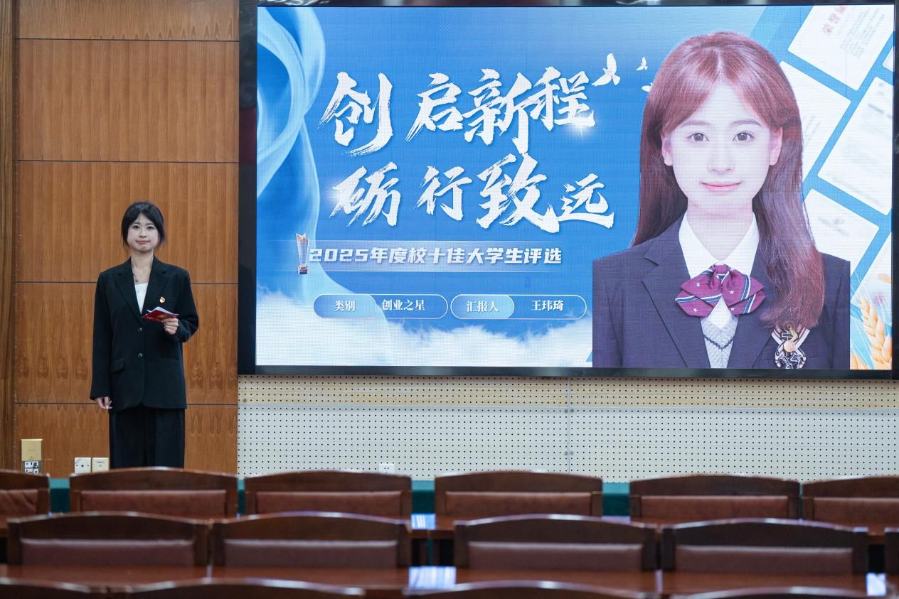 为深入学习贯彻习近平新时代中国特色社会主义思想,落实立德树人根本任务,扎实推进学校“三领三读”工作,大力选树新时代大学生先进榜样,充分展示我校大学生群体昂扬向上的精神风貌,10月21日,校第三届“十佳大学生”风采展示活动在行政楼6楼会议室如期举行。校党委学生工作部副部长樊华妍、校团委书记丁赞华以及各基层团组织书记出席并担任评委嘉宾。
