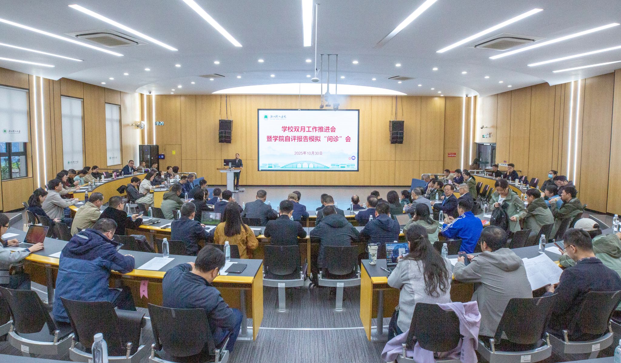 10月30日,学校在杨汛桥校区召开双月工作推进会暨学院自评报告模拟“问诊”会。全体校领导出席会议,副校长陈新民主持会议,审核评估相关职能部门负责人、各学院班子成员、各基层教学组织负责人参加会议。