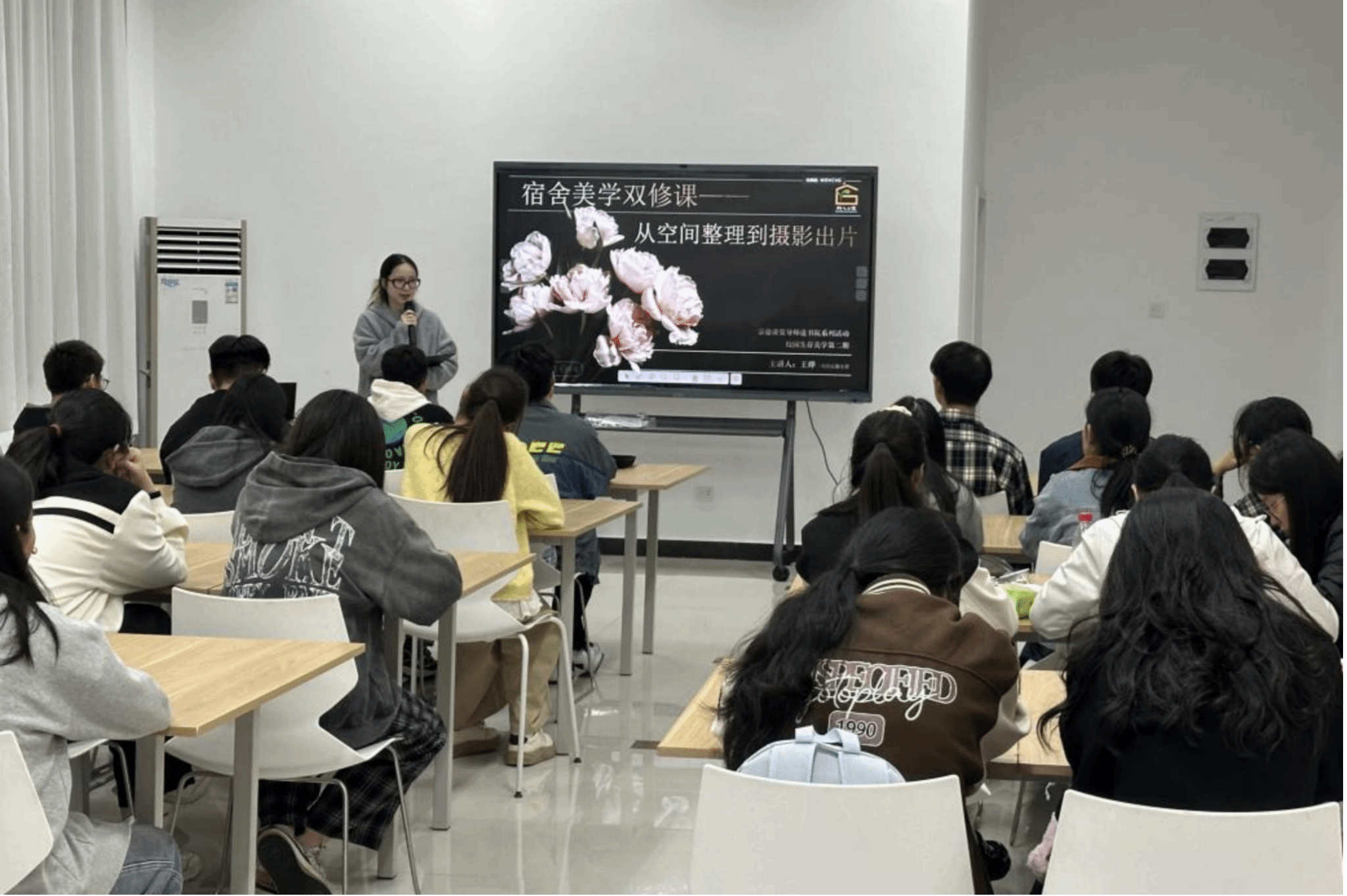 同时部门还精心组建管家授课团队,目前预计联动两校区各书院开展导师进书院课程9节,后续也将持续更新课程内容,让育人服务精准触达更多学生群体。系列课程中,王烨以一堂生动有趣的“宿舍美学双修课:从空间整理到摄影出片”为本期系列课程拉开序幕,引发了学生们的热烈反响。