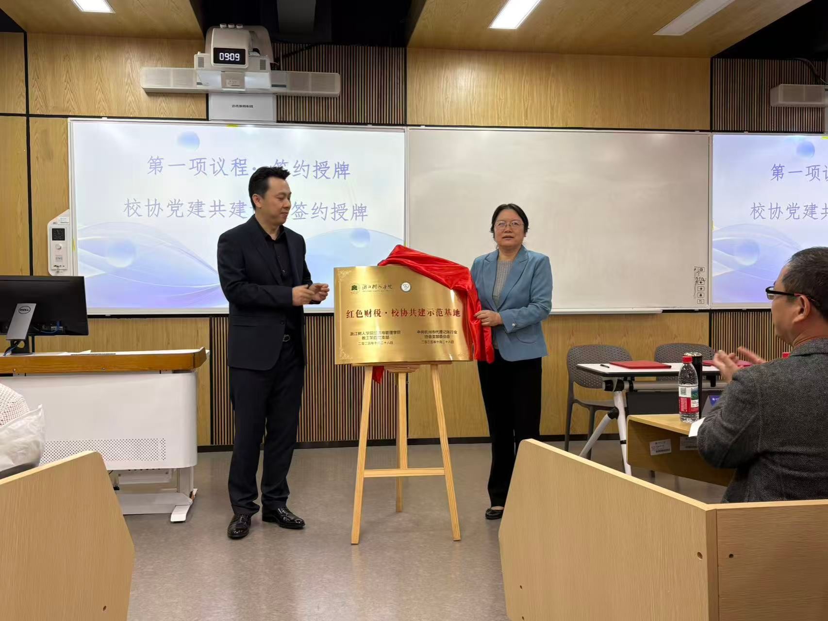 本次开班仪式以“院协共建、产教融合”为核心,议程紧凑而充实。现场完成院协党建共建协议、产教融合共同体两项签约,经济与管理学院党委书记张亚珍教授、副院长苗森教授,分别同杭州市代理记账行业协会张彪书记和周巾纭会长揭牌,学院领导为行业协会专家颁发特聘讲师证书,搭建起院企协同育人的坚实桥梁。周巾纭会长承诺将调动行业最优资源,为学员提供资深专家指导与实践机会;苗森副院长以自身辅修专业的亲身经历,勉励学员把握数字经济风口,在合规领域深耕细作。