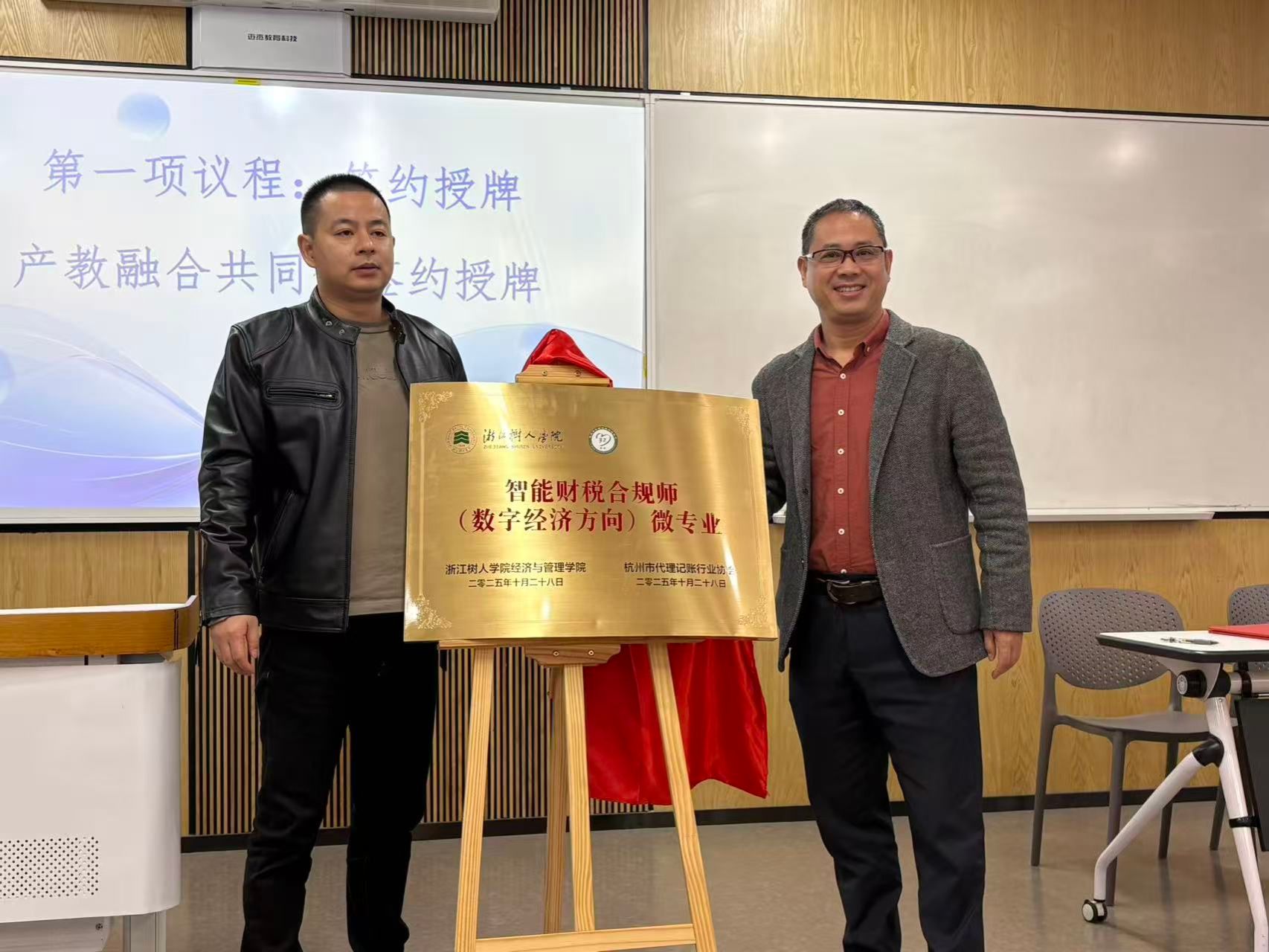 当数字经济浪潮席卷财税行业,当合规化成为行业发展必然趋势,一场聚焦未来人才培养的盛会如约而至。2025年10月28日,浙江树人学院经济与管理学院与杭州市代理记账行业协会联合打造的首届智能财税合规师(数字经济方向)微专业开班仪式,在尚德2-208圆满举行!院协领导、行业专家、授课教师与33名精选学员齐聚一堂,共同开启智能财税合规人才培养的崭新篇章。