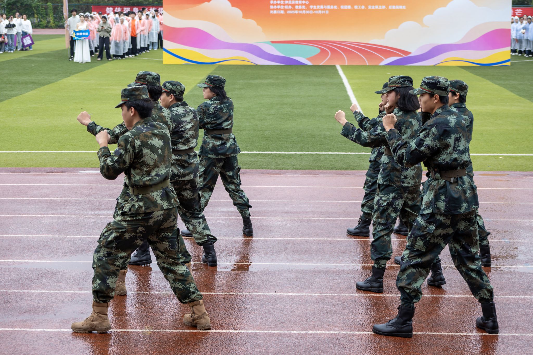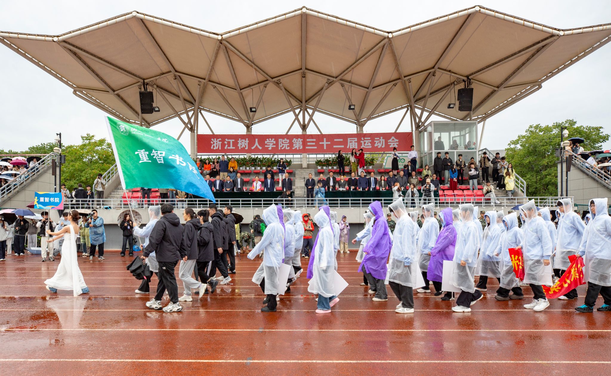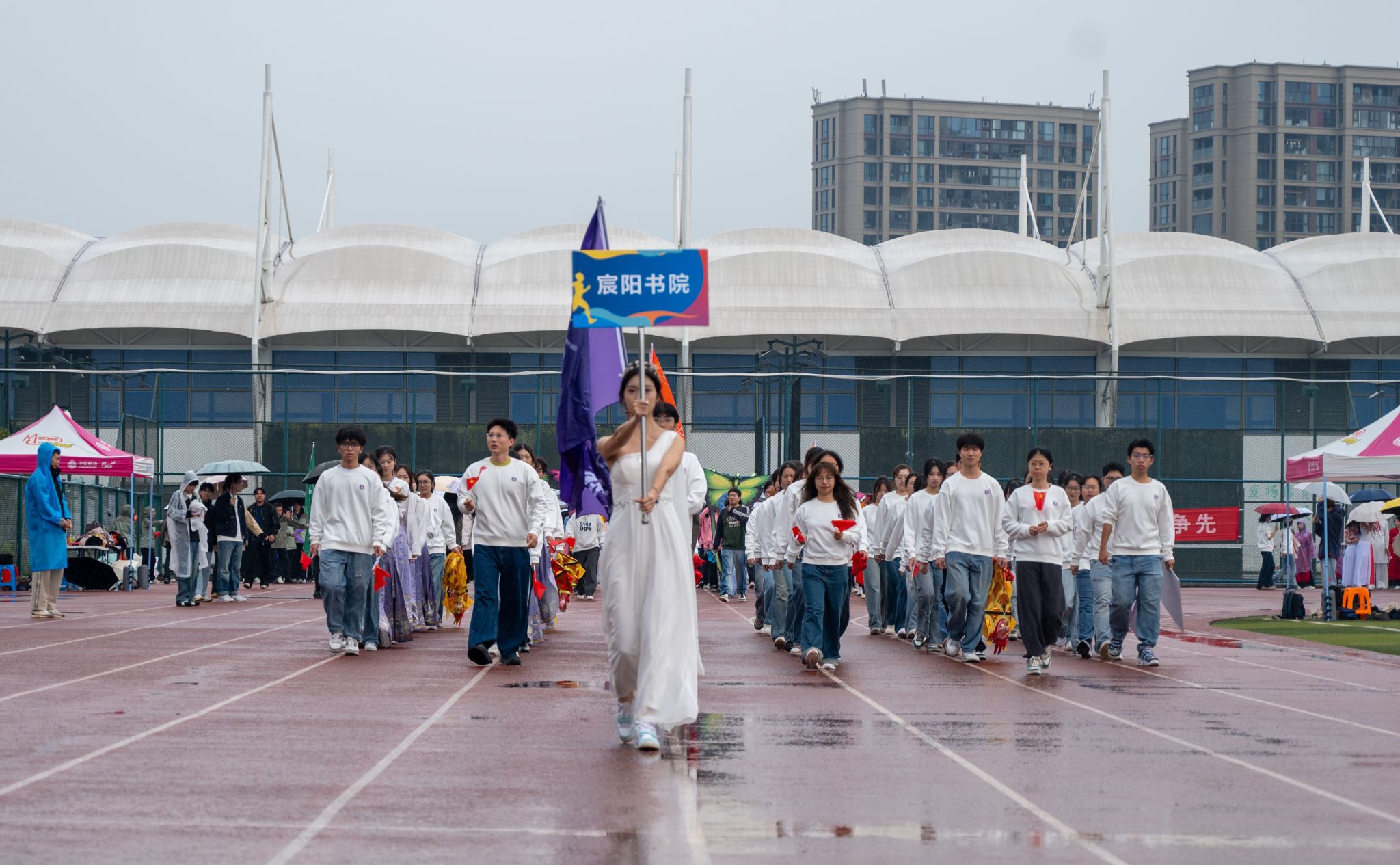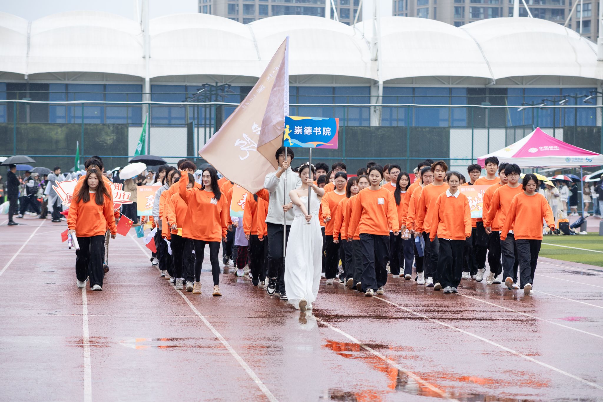 在校旗、国旗护卫队的引领下,崇德书院、重智书院、宸阳书院、明哲书院、毫末书院、继续教育学院及教职工代表队依次入场并表演。