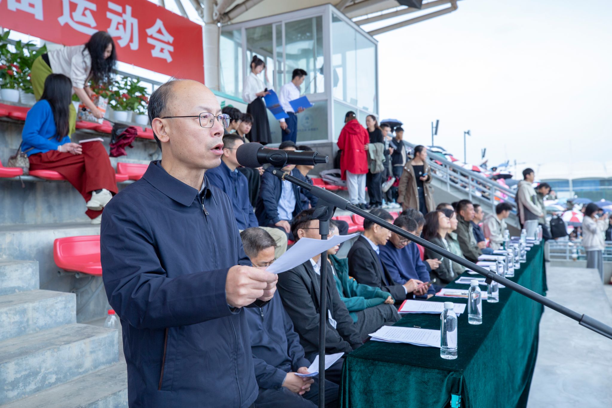 校党委副书记王军致开幕辞。他表示,近年来,学校始终坚持“五育并举”,深耕体育育人沃土,体育工作捷报频传,走出一条高质量发展的“树人之路”。学校校队及个人在国家级、省级等各类大赛中大放光彩,取得多项突破;校友姚攒因在第17届夏季残奥会上的卓越表现,被浙江省政府授予“记大功奖励”。他希望运动员们能发扬“更快、更高、更强、更团结”的奥林匹克精神,以饱满的热情、昂扬的斗志、勇于拼搏的信念,在赛场上赛出风格、赛出水平。