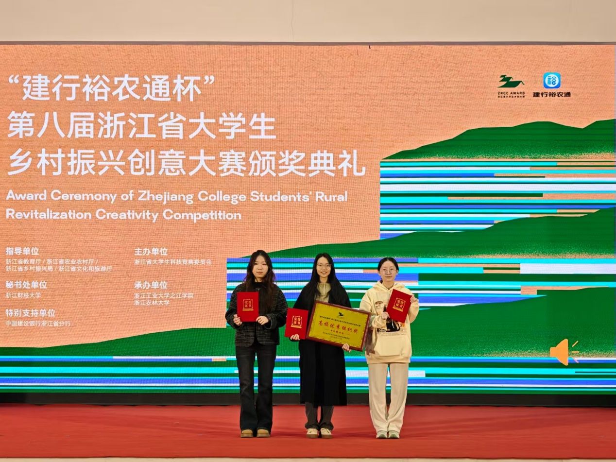 近日,从“建行裕农通杯”第八届浙江省大学生乡村振兴创意大赛闭幕式现场传来捷报。经过与全省108所高校、5325支团队的激烈角逐,我校学子凭借卓越的创新能力和扎实的实践功底,最终斩获金奖8项、银奖6项、铜奖7项,共计21个奖项的优秀成绩,获奖总数与高等级奖项数量均实现历史性突破。同时,学校因组织工作表现突出,被大赛组委会授予 “高校优秀组织奖” ,实现了竞赛成绩与精神文明双丰收。