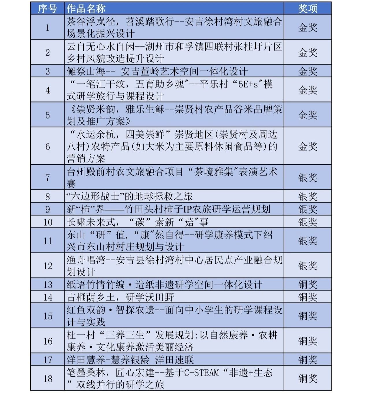 “建行裕农通杯”第八届浙江省大学生乡村振兴创意大赛主体赛花获奖名单