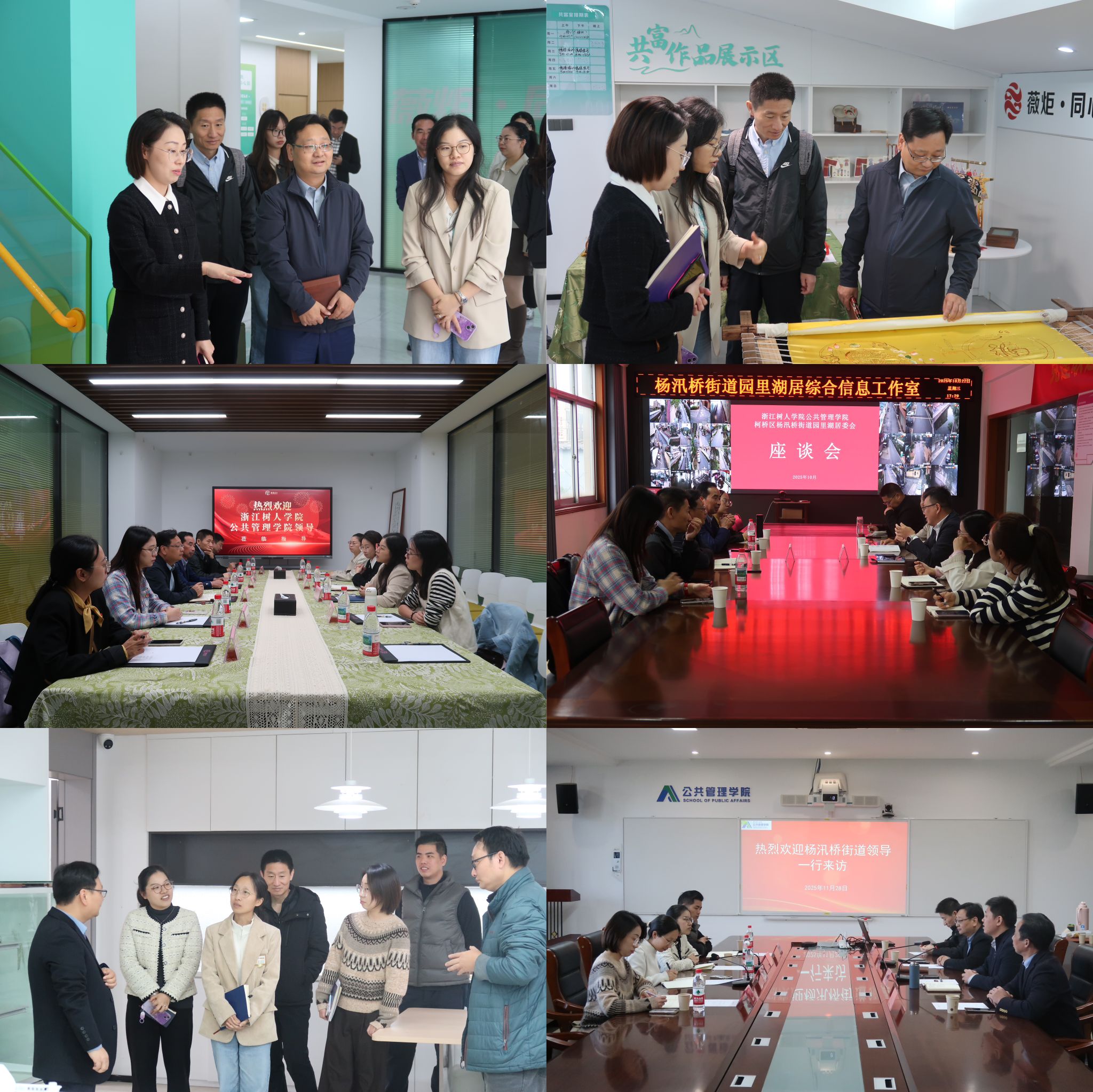 正式签约前,双方经过多次互访交流,积极探索创新共建模式,形成问题清单、任务清单、成效检验等工作环节,为党建品牌创建积累基础。10月22日,为推动学院党建联建与基层实践对接,学院党委副书记叶智校带队先后走访杨汛桥街道紫薇社区与园里湖居委会,围绕社区治理现状、数字化服务场景及学生实践基地建设等内容开展实地调研与座谈交流,进一步推动双方在党建引领下的人才培养、基层治理和专业服务等组织化合作。11月28日,杨汛桥街道党工委副书记戴晶莹带队访问公管学院,参观了数字民生实训中心、智慧物业工程实验实训室,对中心展示的数字民生服务模拟场景、未来社区治理实训模块、智慧物业产业学院及实践导向的教学理念给予肯定,认为其能有效弥补基层社区专业功能短板。学院党委书记汪群龙立足已有合作基础,提出以党建为引领搭建组织架构,通过签订协议明确任务清单,强化资源共享,注重实战成效,积极打造共建品牌。