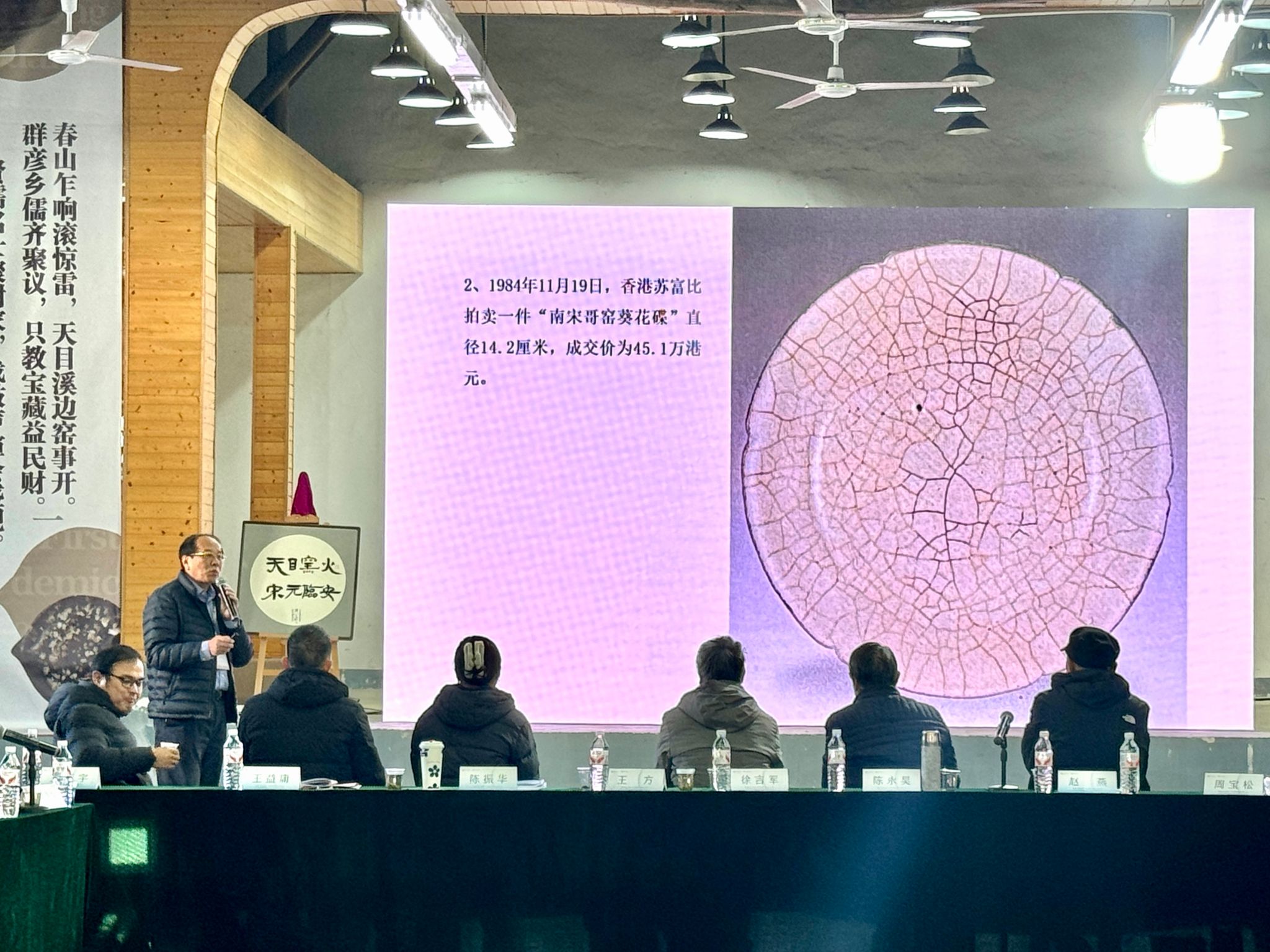 接着,远在四川大凉山支教的陈国平研究员请天目窑研究专委会秘书长郑士青代读贺信。他结合凉山“绿瓷”的观察,提出天目窑研究应连接古今、激活传统工艺,并期盼家乡以窑火复兴为契机,推动文化资源与乡村振兴、文旅融合协同发展。