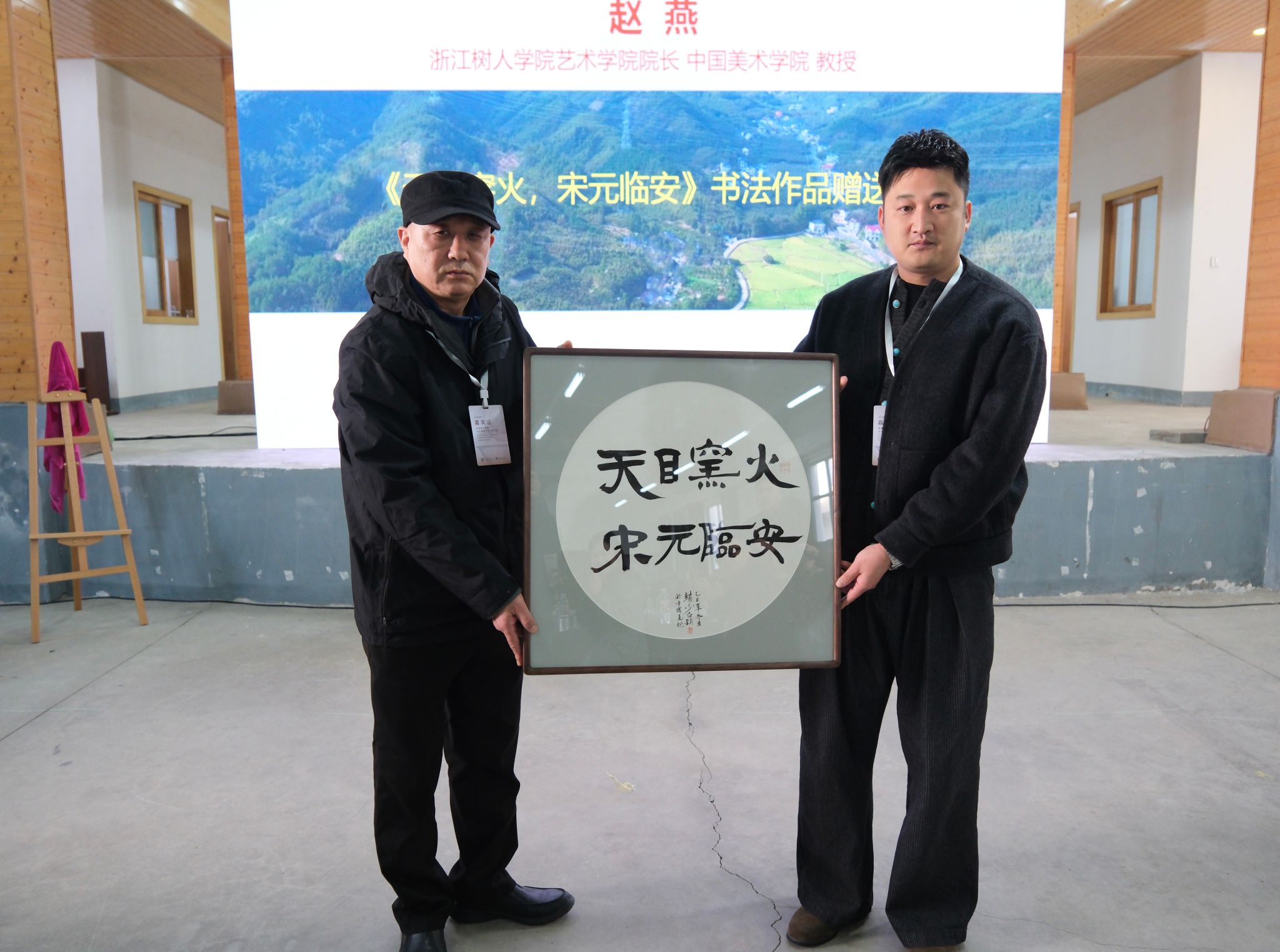 随后,浙江树人学院艺术学院院长赵燕向谢家村天目瓷陈列馆捐赠《天目窑火 宋元临安》书法作品。