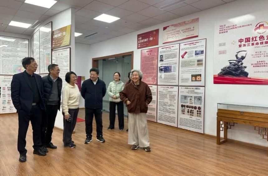 红色是信仰的底色,青年是时代的坐标。在历史的长河中,红色精神熠熠生辉,激励着一代又一代中华儿女奋勇前进。2025年12月16日,浙江树人学院副校长陈新民教授、浙江树人学院经济与管理学院院长阎洪教授,带领我校小微创投工作室的20多名师生一起走进浙江紫荆钱币文化中心,参观中国红色金融展(1921—1949),开启红色金融的寻根之旅。浙江省政府特约研究员、浙江紫荆钱币文化中心首席专家黄小杭为师生现场导览,并主持座谈,通过沉浸式观展与专题座谈,同学们上了一堂生动的“大思政课”。