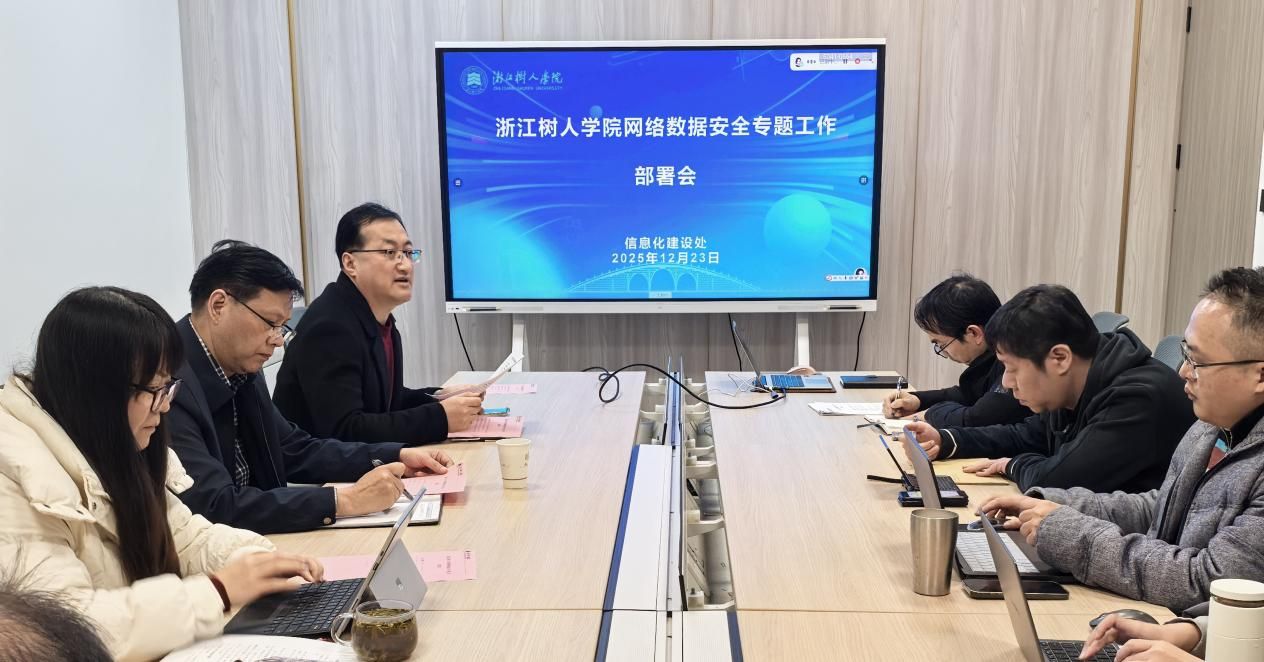 为深入贯彻落实全省教育系统网络数据安全专题会议精神,压紧压实校园网络数据安全责任,全面筑牢校园网络安全防线,12月23 日,我校在拱宸桥校区召开网络数据安全专题工作部署会。副校长叶时平出席会议并讲话,信息处全体工作人员参会,信息处副处长(主持工作)张天荣主持。