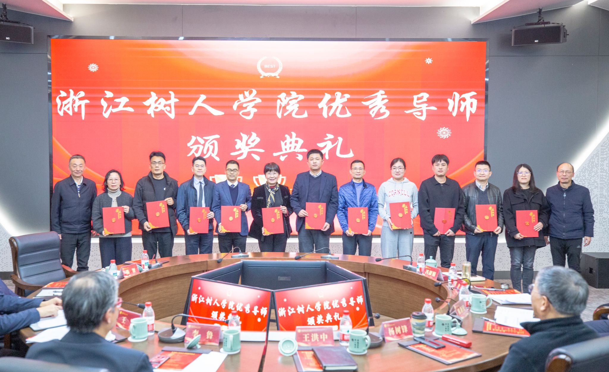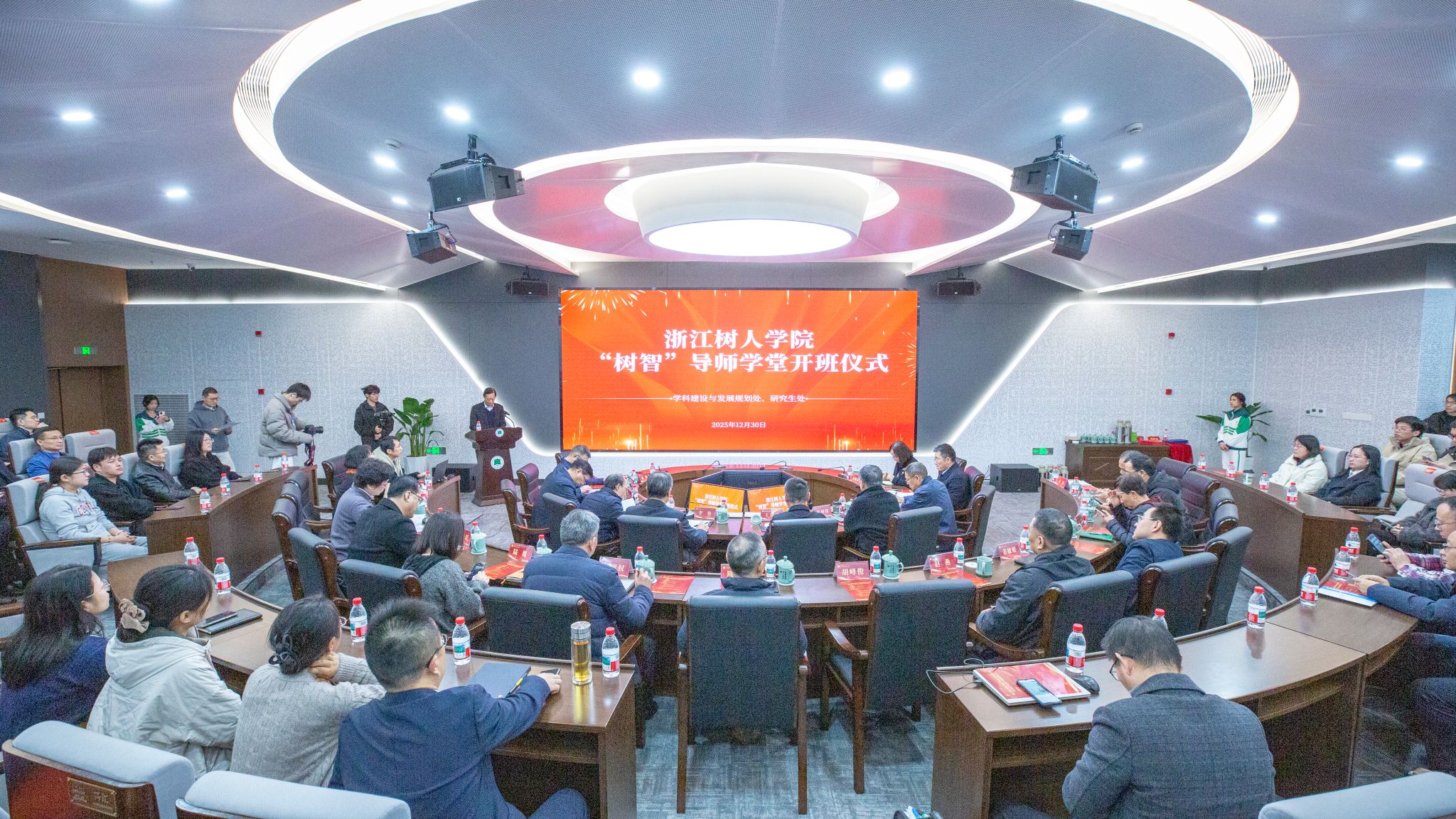 2025年12月30日下午,浙江树人学院“树智”导师学堂开幕式暨优秀硕士研究生导师颁奖仪式在拱宸桥校区查济民大厦230报告厅举行。中国科学院院士杨树锋教授应邀出席并作专题报告。校党委书记王洪中,校长、校学位评定委员会主席李鲁,校党委副书记、校学位评定委员会副主席王军,副校长、校学位评定委员会副主席陈新民,副校长叶时平、陈浚,校长助理冯淑娟,校学位评定委员会副主席章清出席活动。活动由校学术委员会常务副主任、校学位评定委员会副主席陈智主持。