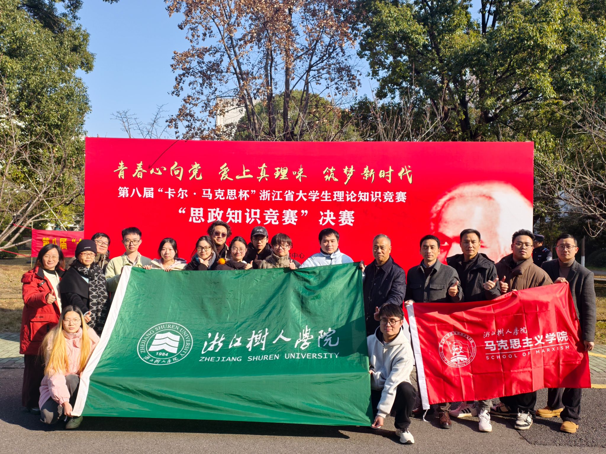 近日,由中共浙江省委宣传部、中共浙江省委教育工作委员会、浙江日报报业集团、浙江工商大学等单位主办,潮新闻客户端、浙江日报全媒体理论部、浙江工商大学马克思主义学院等单位承办的第八届“卡尔・马克思杯”浙江省大学生理论知识竞赛决赛在杭州圆满落幕。我校马克思主义学院组织、选派的本专科组两支参赛队伍在2026年1月3日的决赛中,荣获本科组团队二等奖、专科组团队三等奖、本科组“大学生讲思政课”二等奖、专科组“大学生讲思政课”三等奖,其中厉政杰、沈佳艺同学分别荣获本科组个人一等奖和二等奖,沈毅等6位同学获个人三等奖,展现了我校青年学子比较扎实的理论功底与团结拼搏精神。