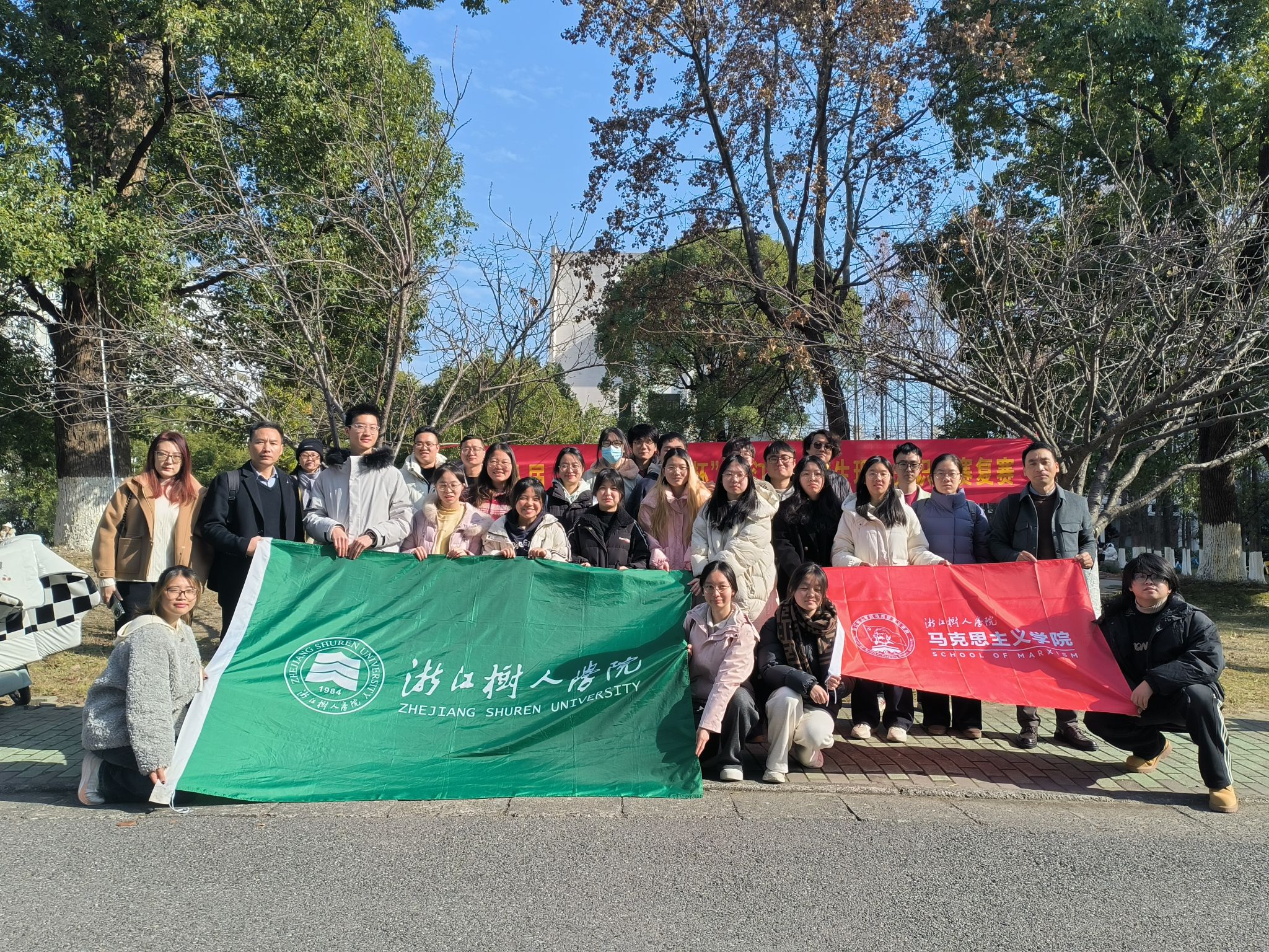 我校备赛工作自2025 年11月启动,在各书院广泛动员基础上,通过理论测试、思政微课展示等多轮选拔,最终组建两支各由十名优秀学子构成的参赛团队,涵盖物业管理、英语、汉语国际教育、秘书学、茶文化贸易、环境工程等多个专业领域。并成立由冯伟副院长担任领队,江宏博士担任联络员,王大伟等5位老师担任本科组、陈竞等3位老师担任专科组的教师指导团队,旨在为省赛队员们提供最强大支持力量。马院和书院深度联动,协手“以赛育人”。