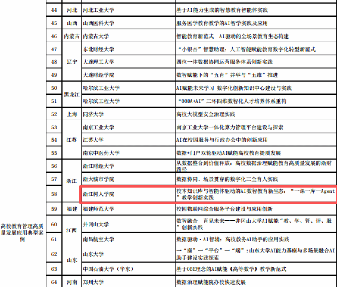 近日,教育部主管的《中国教育信息化》杂志社公布了“2025年数字化赋能教育管理高质量发展应用典型案例”入编名单,我校报送的《校本知识库与智能体驱动的AI数智教育新生态:“一课一库一Agent”教学创新实践》案例成功入选,成为全国高校入选的42个案例之一。