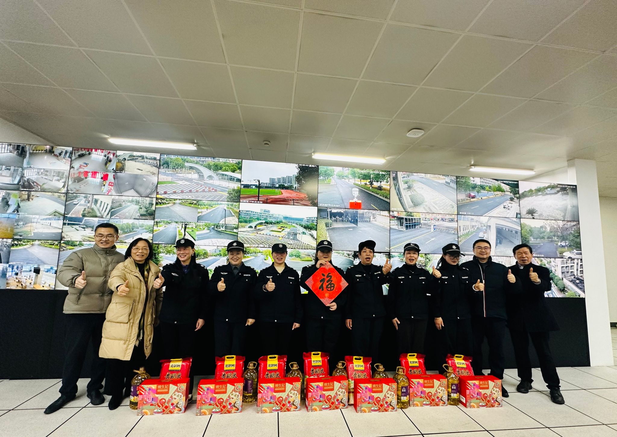 2月7日,新春佳节将至,年味愈浓之际,校长助理冯淑娟在安全保卫部负责人陪同下,走访慰问寒假期间两校区坚守岗位一线的保卫干部、校卫队队员及门岗外包单位工作人员,向始终守护校园平安的他们致以新春的美好祝福,并送上慰问品,把学校的关怀与温暖送到安保一线工作人员身边。