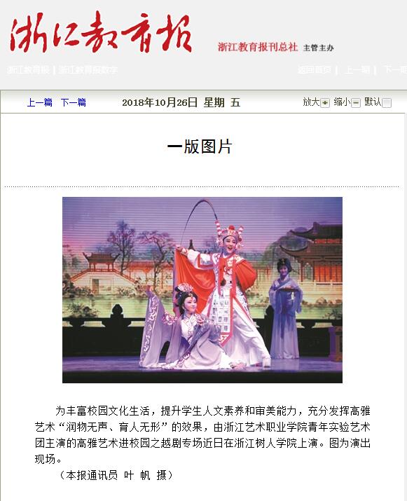 26日,浙江教育报以图片新闻的形式对该项活动进行了报道。
