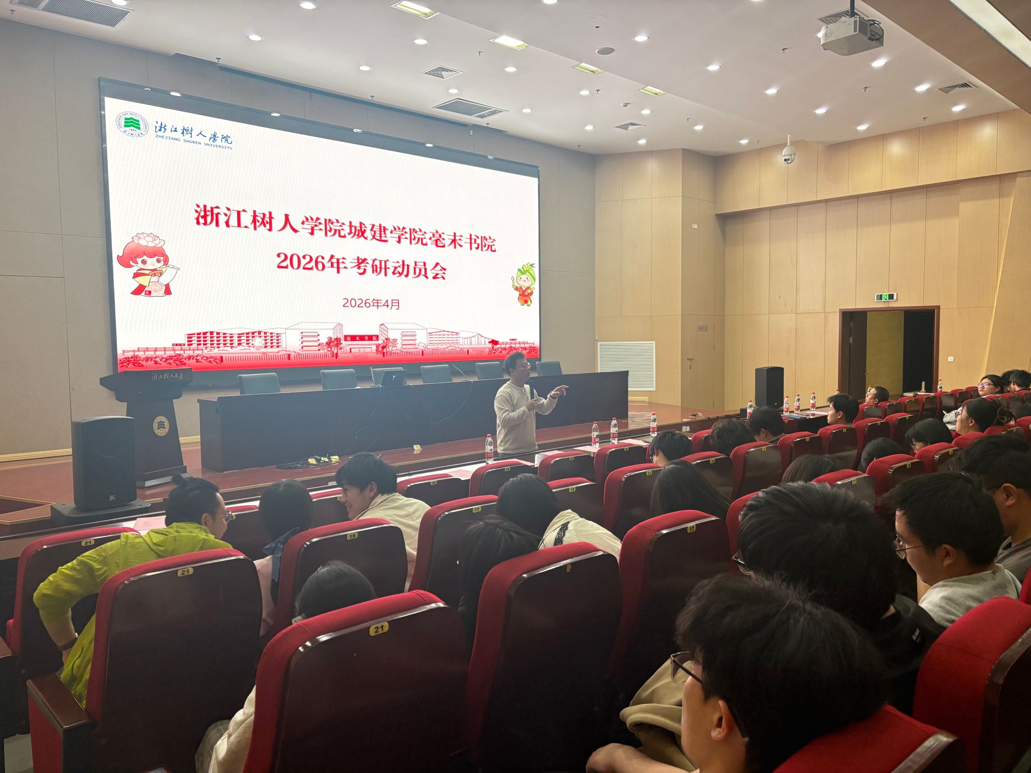 为进一步帮助学生认清考研形势、明确备考方向、激发考研信心,4月7日下午,毫末书院充分发挥“一站式”学生社区育人阵地作用,精心统筹并承办了城建学院与艺术学院2026年考研动员会。城建学院副院长王振华、艺术学院副院长陈金平、毫末书院常务副院长刘波永、直属党支部书记陈吉等领导出席活动。动员会内容丰富、针对性强,吸引了大量大三、大四学生到场参与。