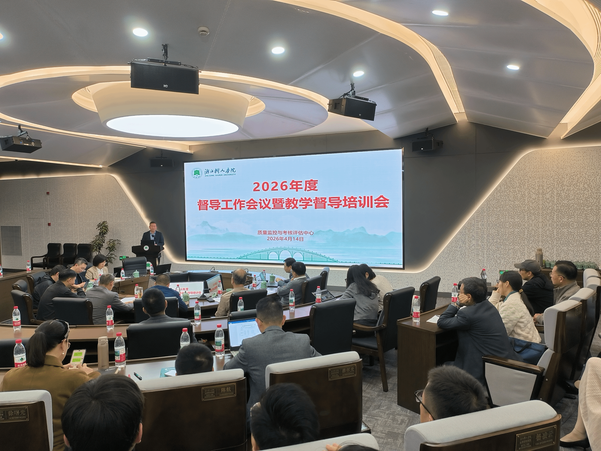 为全面提升教学质量监控水平,推动教学督导工作守正创新,4月14日下午,学校在拱宸桥校区査济民大厦230会议室召开2026年度督导工作会议暨教学督导专题培训会。校院两级教学督导、各教学单位教学院长、教务处领导及质评中心全体成员参会,会议由质评中心主任王章权主持。