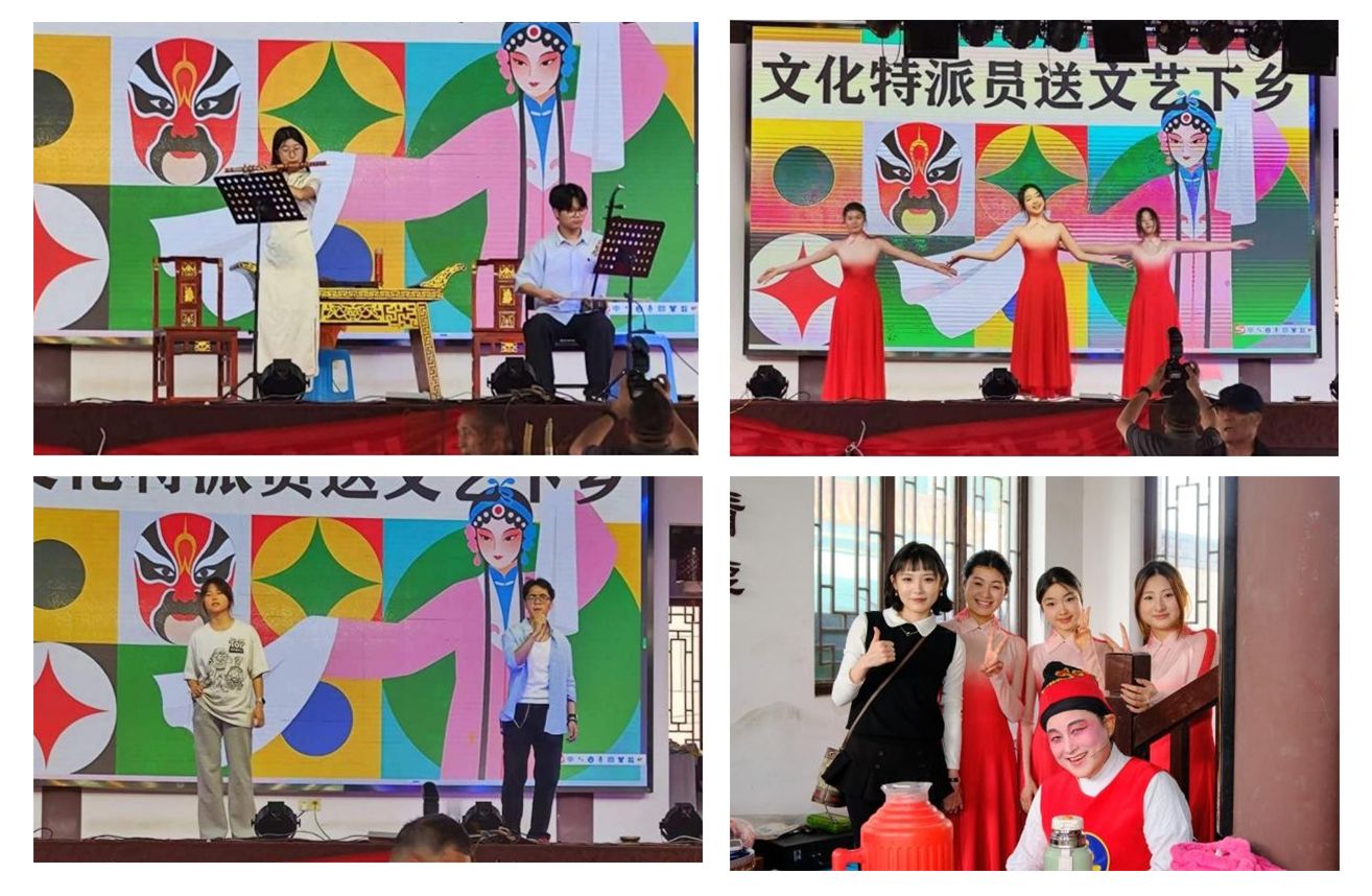 台上台下的精彩演绎打破了常规戏曲表演,不断点燃现场氛围,村民们的掌声与欢呼声此起彼伏,活动现场暖意融融。此次文艺表演不仅丰富了村民的精神文化生活,更以青春之力为乡村文化注入了新鲜活力,也践行了文化特派员“送文化、传文明、润民心”的职责使命。