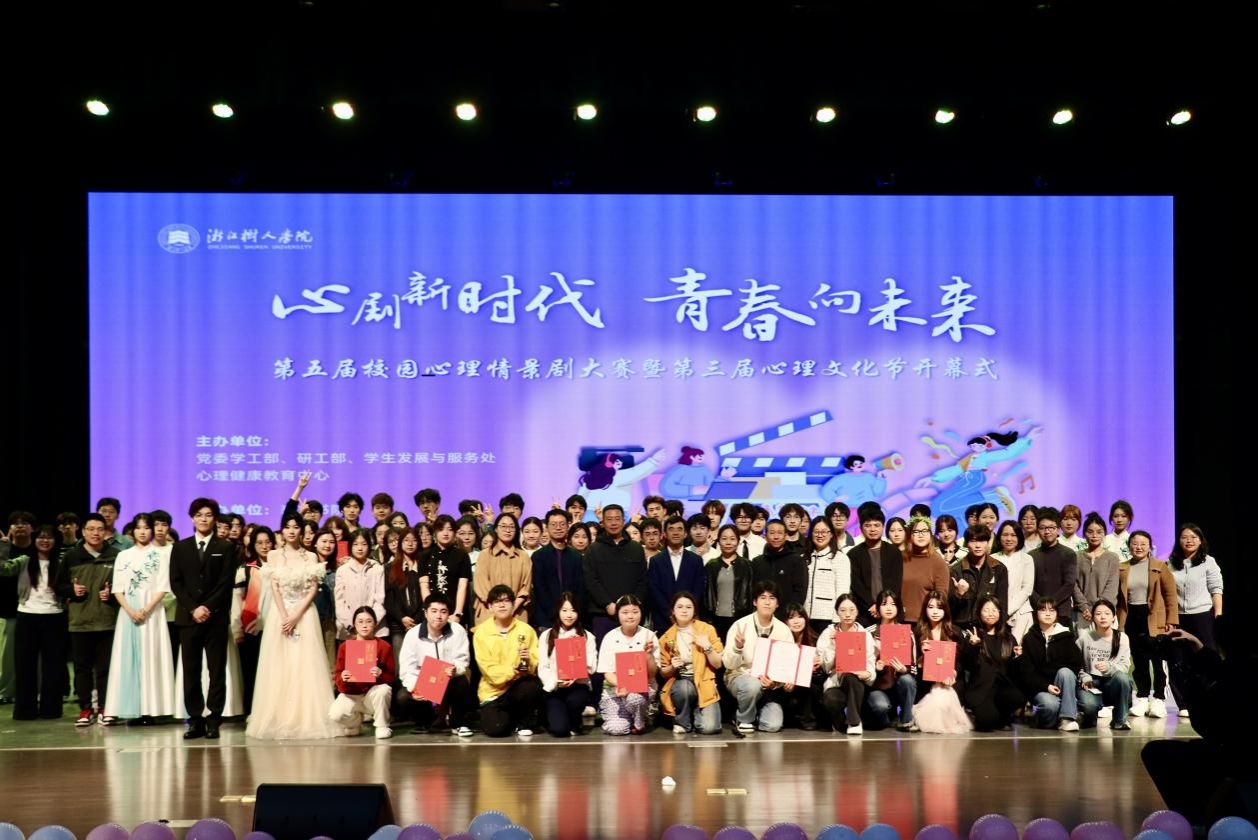4月14日晚,浙江树人学院第五届校园心理情景剧大赛暨第三届心理文化节开幕式在杨汛桥校区李常盛礼堂圆满举行。本次活动由党委学工部、研工部、学生发展与服务处、心理健康教育中心联合主办,毫末书院承办。校党委副书记廖华跃,党委学工部、研工部、学生发展与服务处副处长樊华妍,各书院负责人及师生代表齐聚现场,共同见证这场心灵与艺术交融的青春盛会。大赛特邀绍兴大学心理健康教育中心主任顾玲玲等五位校外专家担任评委。