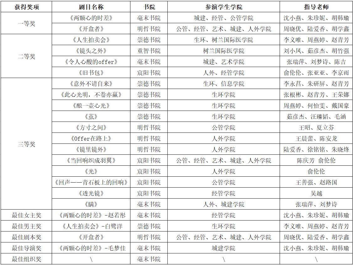 舞台灯光点亮,青春心声绽放。本次大赛汇聚各书院6部原创剧目,聚焦大学生成长困惑、情感关系、网络安全、自我认同等真实议题,以情景剧为载体,展开六场直击人心的心灵对话。