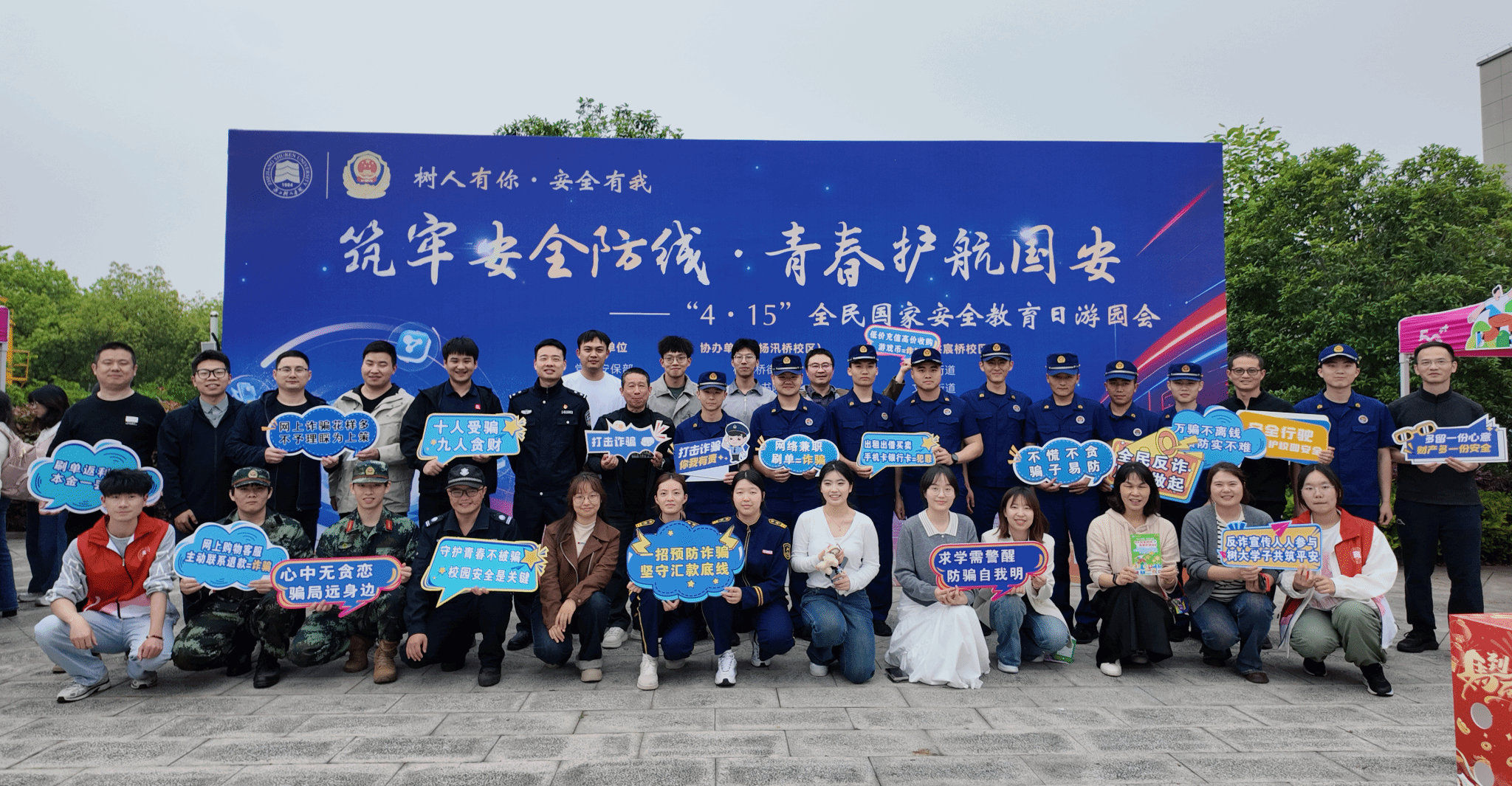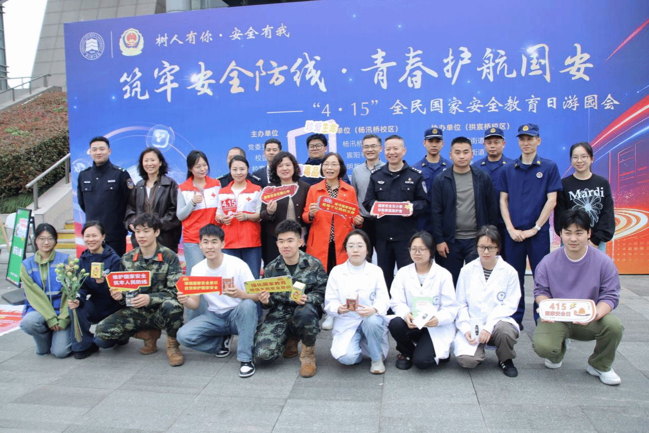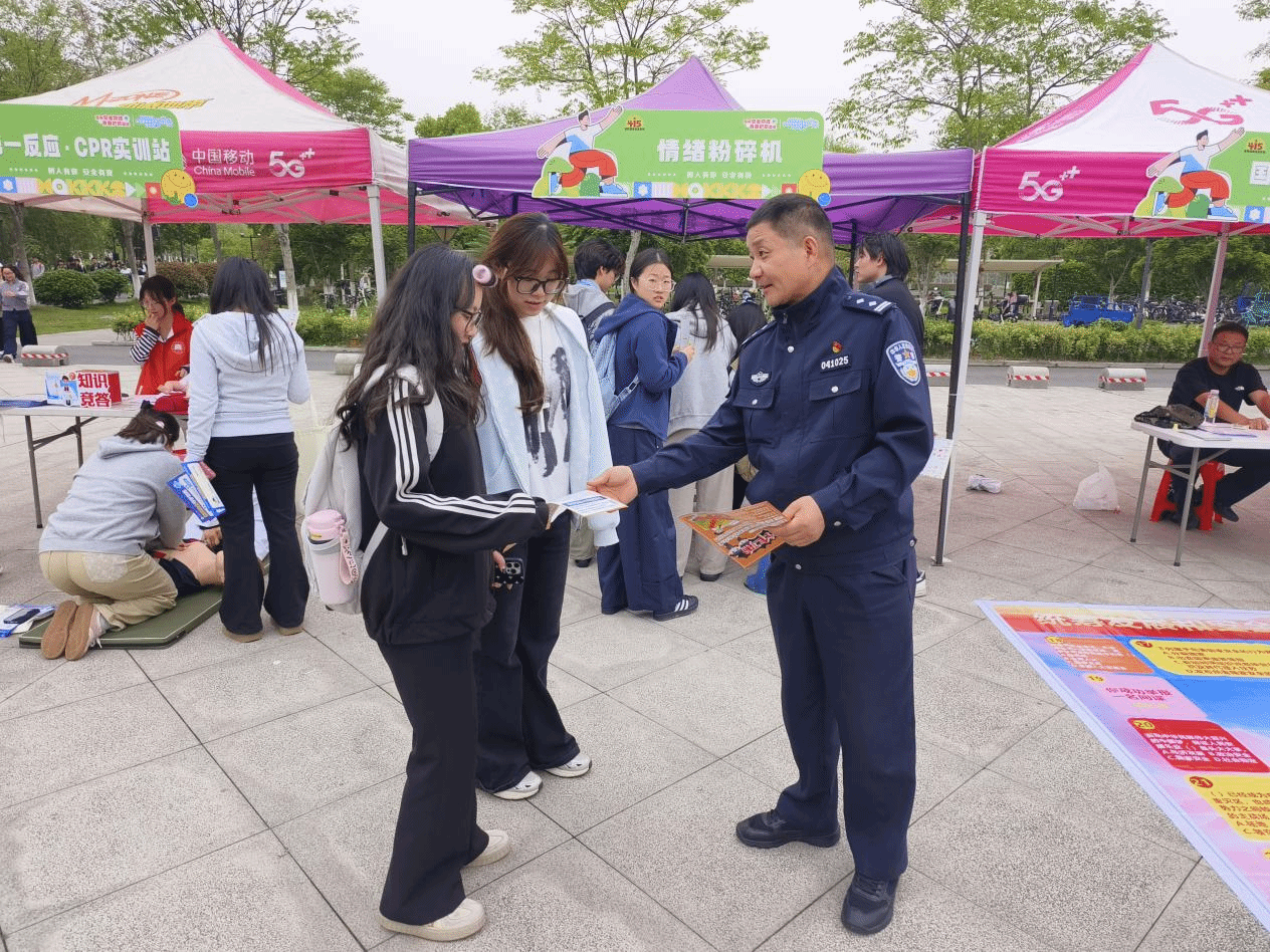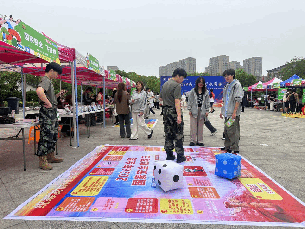为深入贯彻总体国家安全观,全面提升我校学生国家安全意识、法治素养与自我防护能力,在第十一个全民国家安全教育日来临之际,安全保卫部、团委、后勤保障处、各书院与校警驿站联合辖区街道、派出所、消防救援站于4月15日在两校区同步开展 “筑牢安全防线・青春护航国安” 主题游园会。本次活动以趣味互动、实景体验、知识闯关为核心形式,将国家安全、反诈防骗、消防安全、应急急救、禁毒反邪、心理健康等知识融入沉浸式体验,推动安全理念入脑入心。